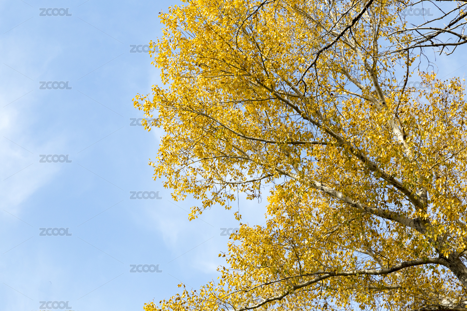 秋天阳光下金黄的树叶