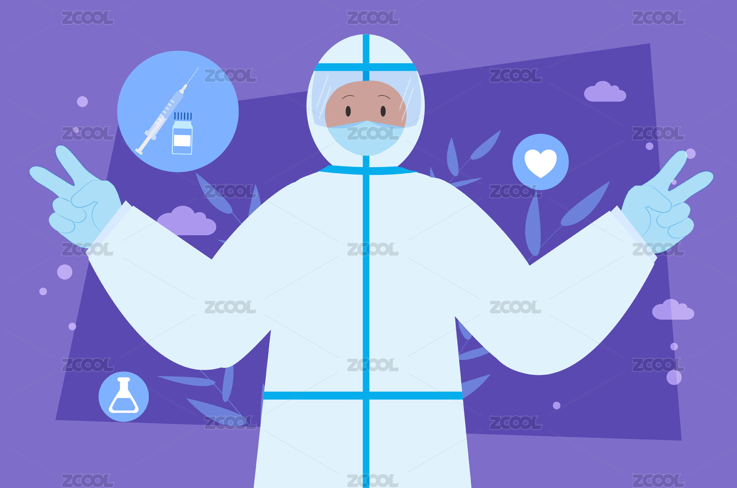 疫情医疗抗疫防护矢量插画