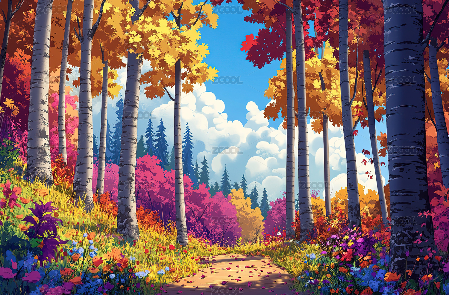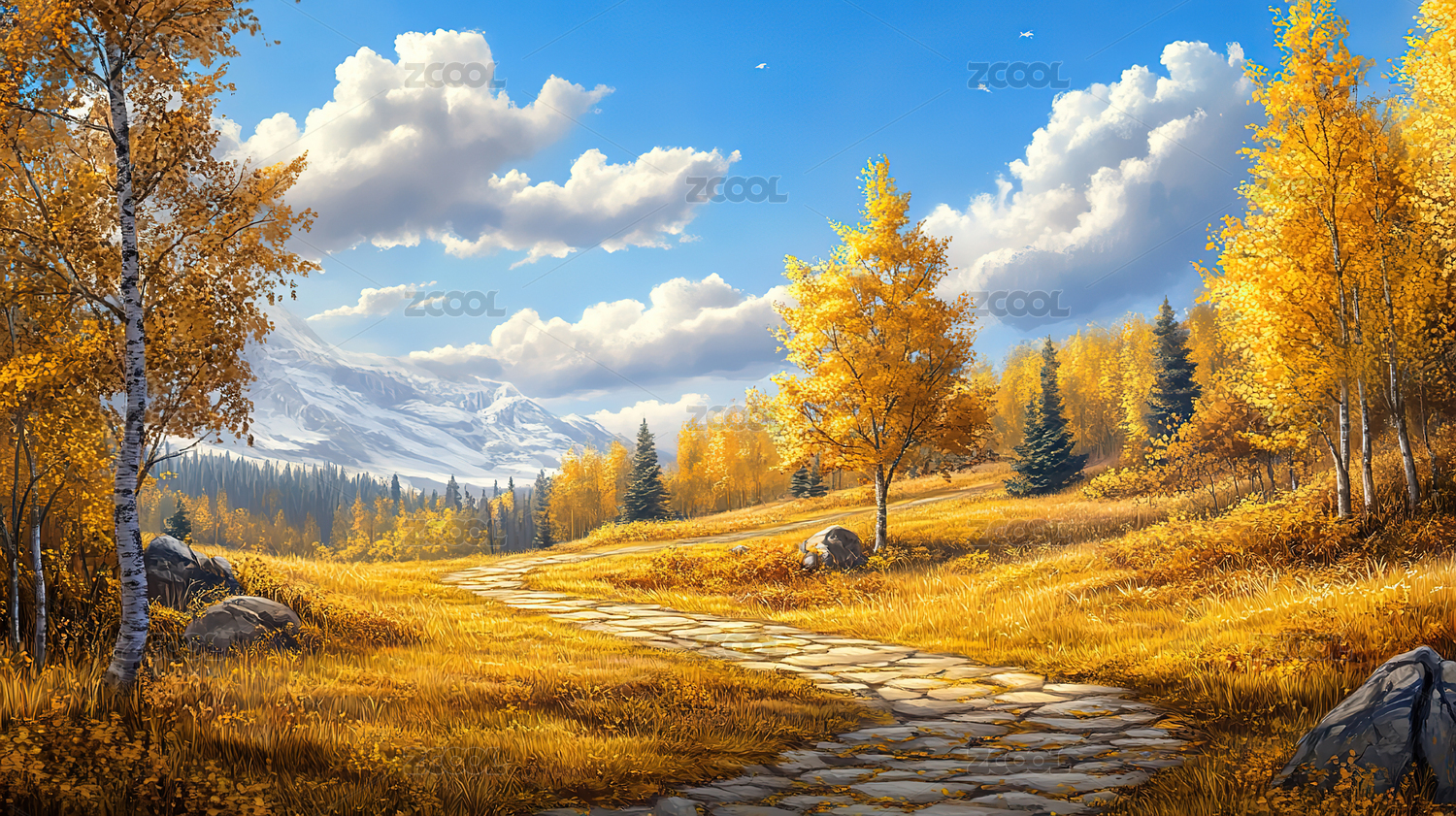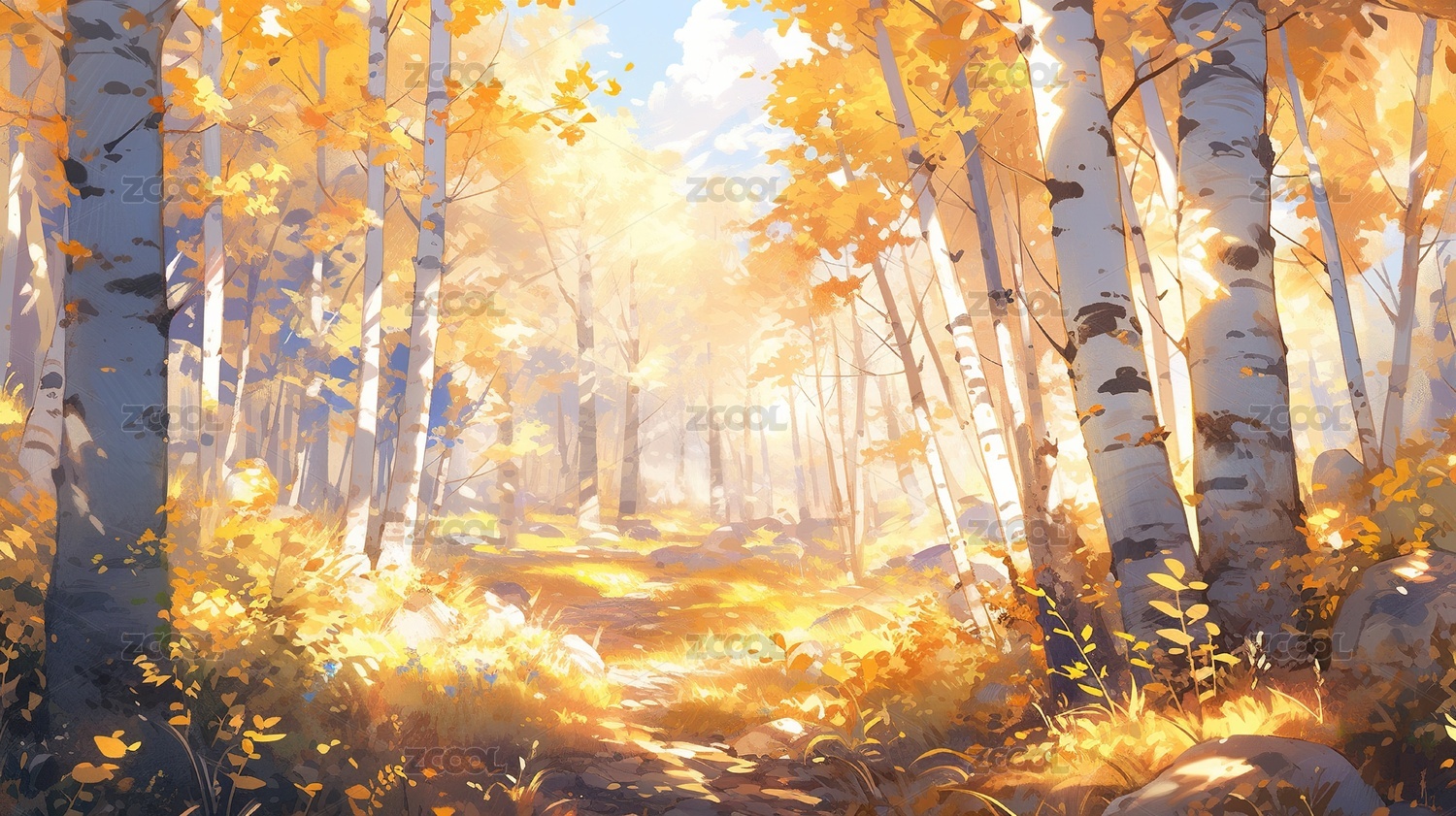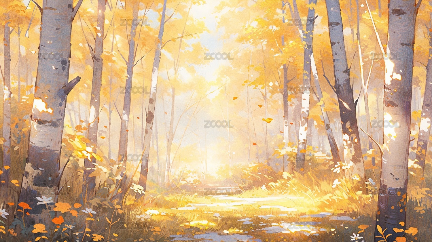 秋天,白桦林,秋分,风景,秋季,落叶,小河,山林