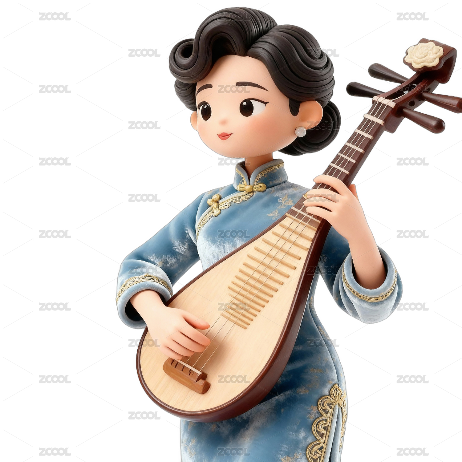 女人,三维图形,插画,卡通,童年,3D,立体,三维,古风,国潮