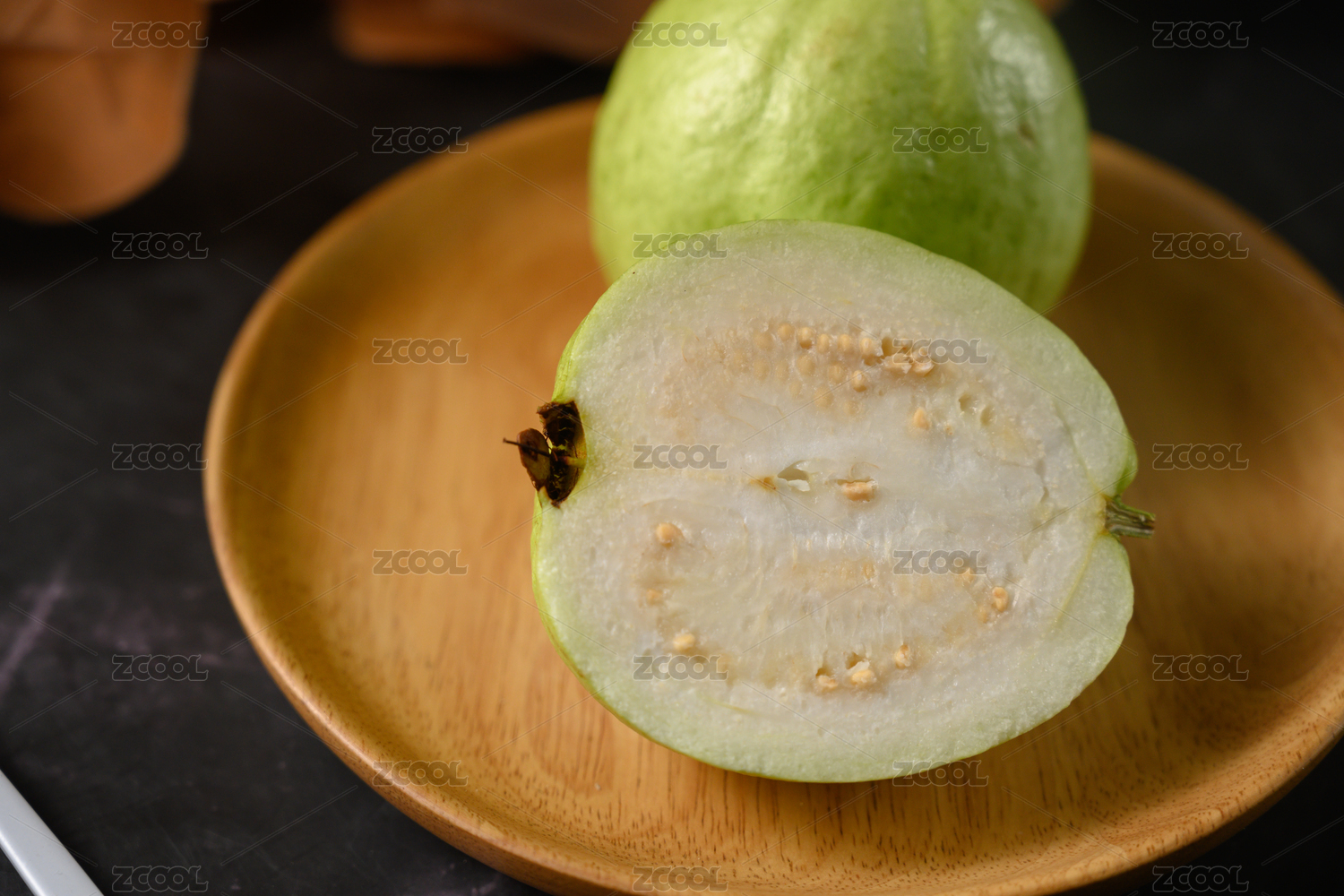 桌面上的盘子里的美味可口的番石榴