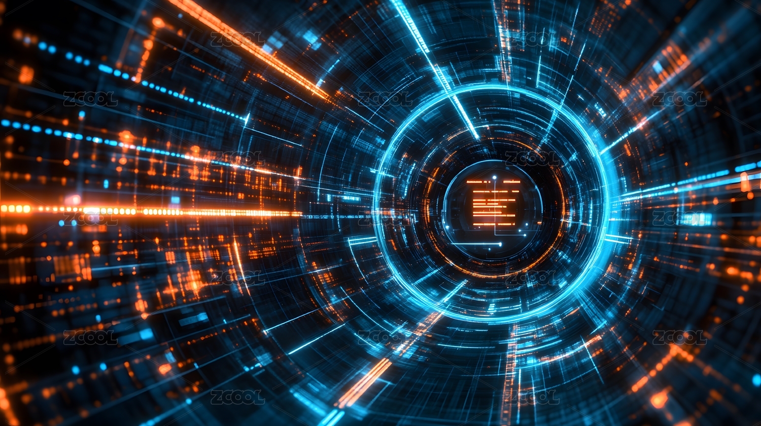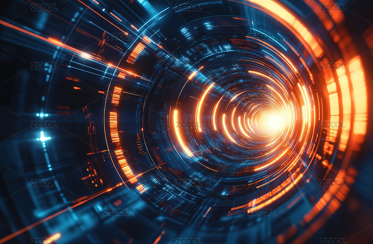 蓝橙色科幻隧道结构图