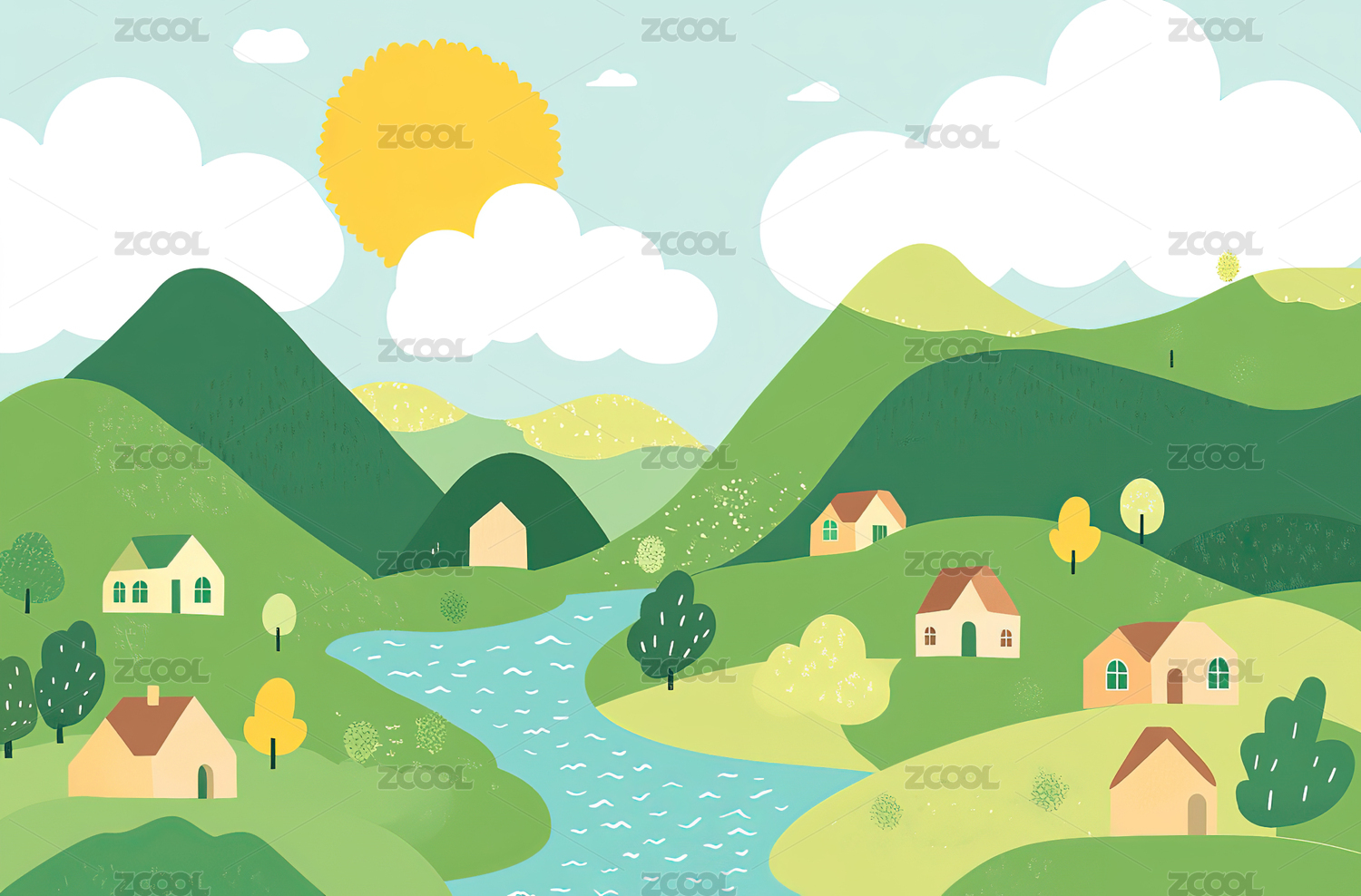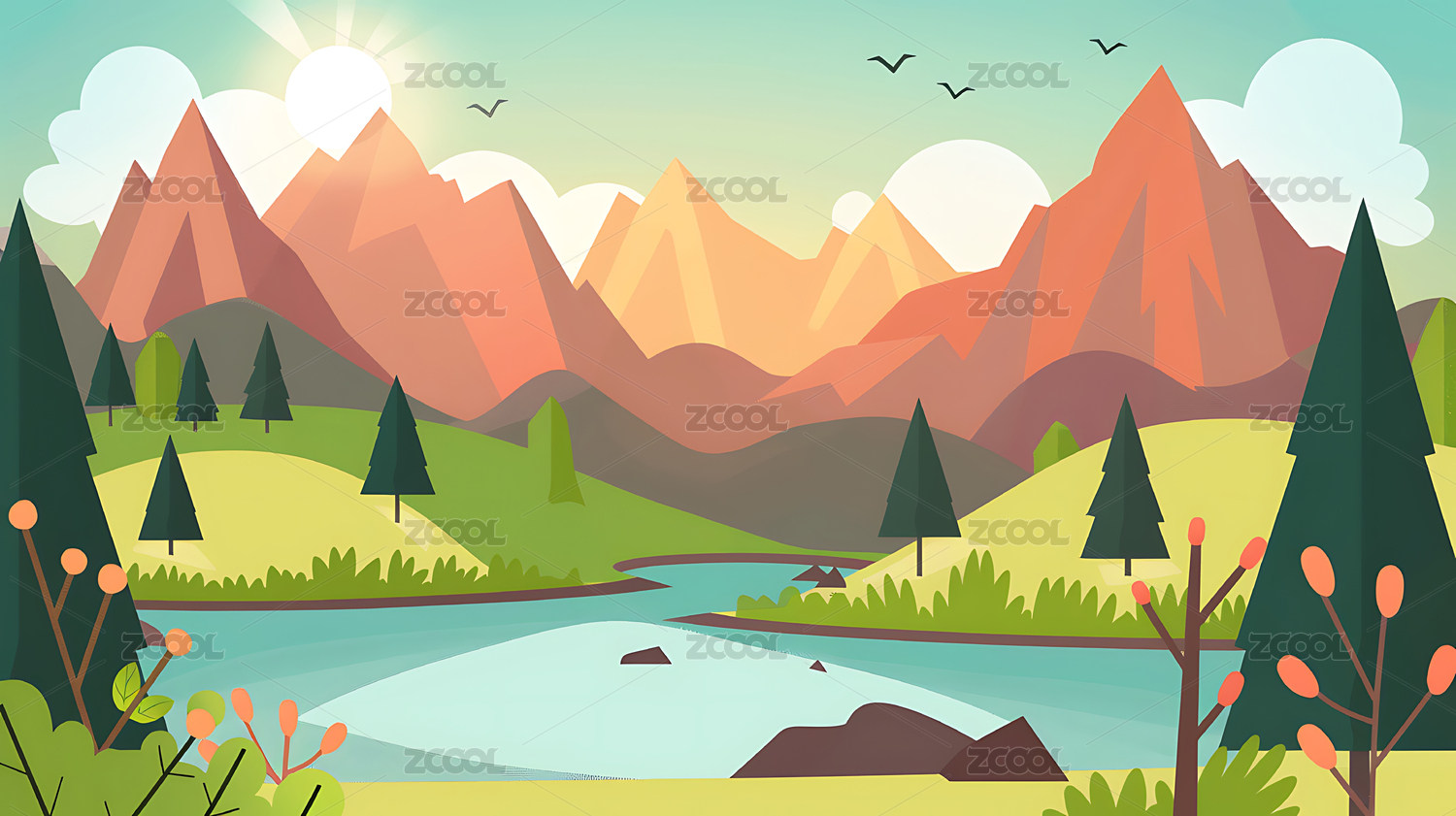 插画,节日,渐变,夏天,自然,植物,户外,叶子,风景,度假