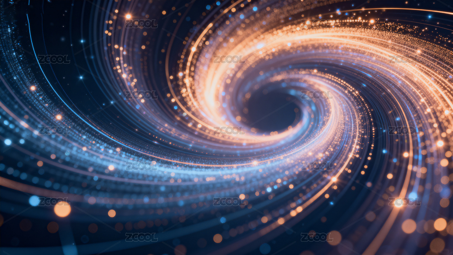 蓝金色光效漩涡光轨深邃深色背景