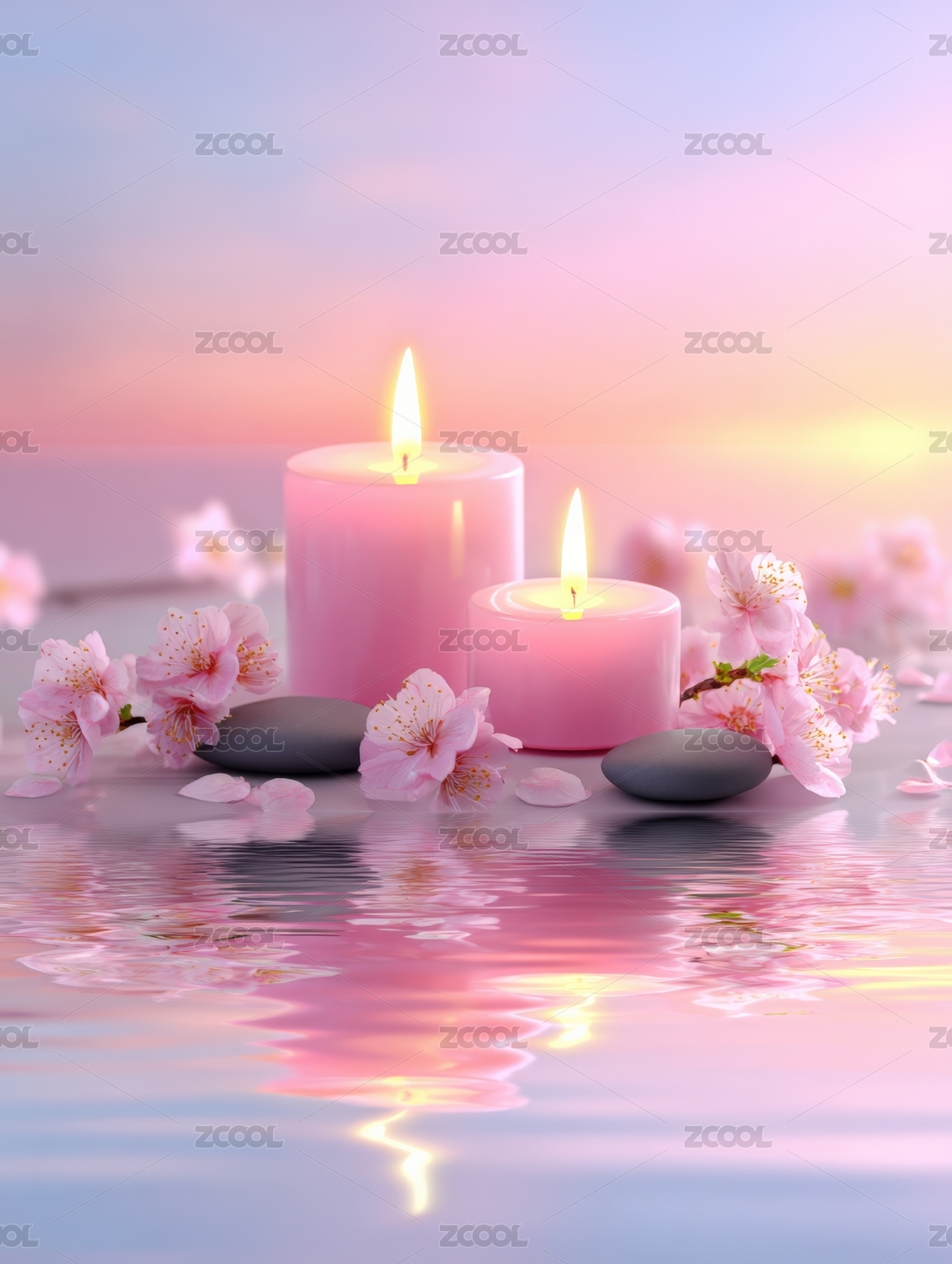 艺术,装饰,樱花,蜡烛,粉色,浪漫,花卉,温馨,柔和,插画