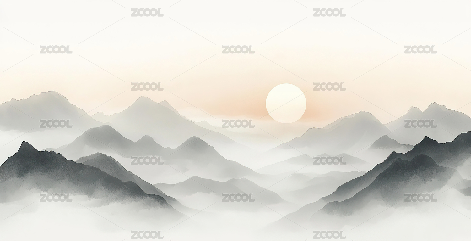 高山,户外,自然,雾,AI数字艺术,自然美,云,水墨画,宁静,插画