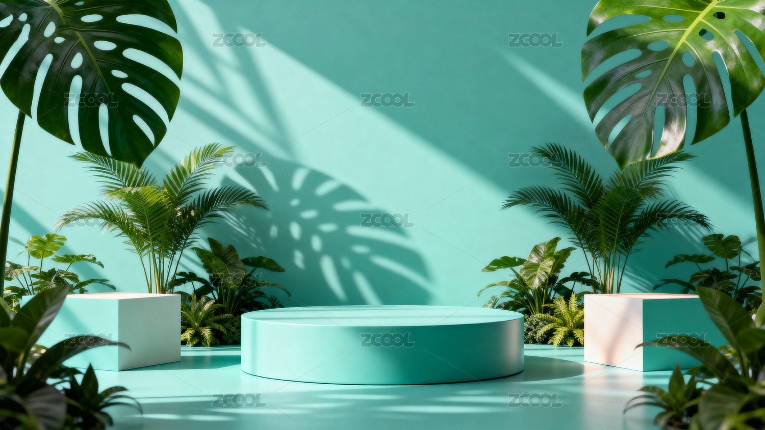 热带植物背景展示台设计