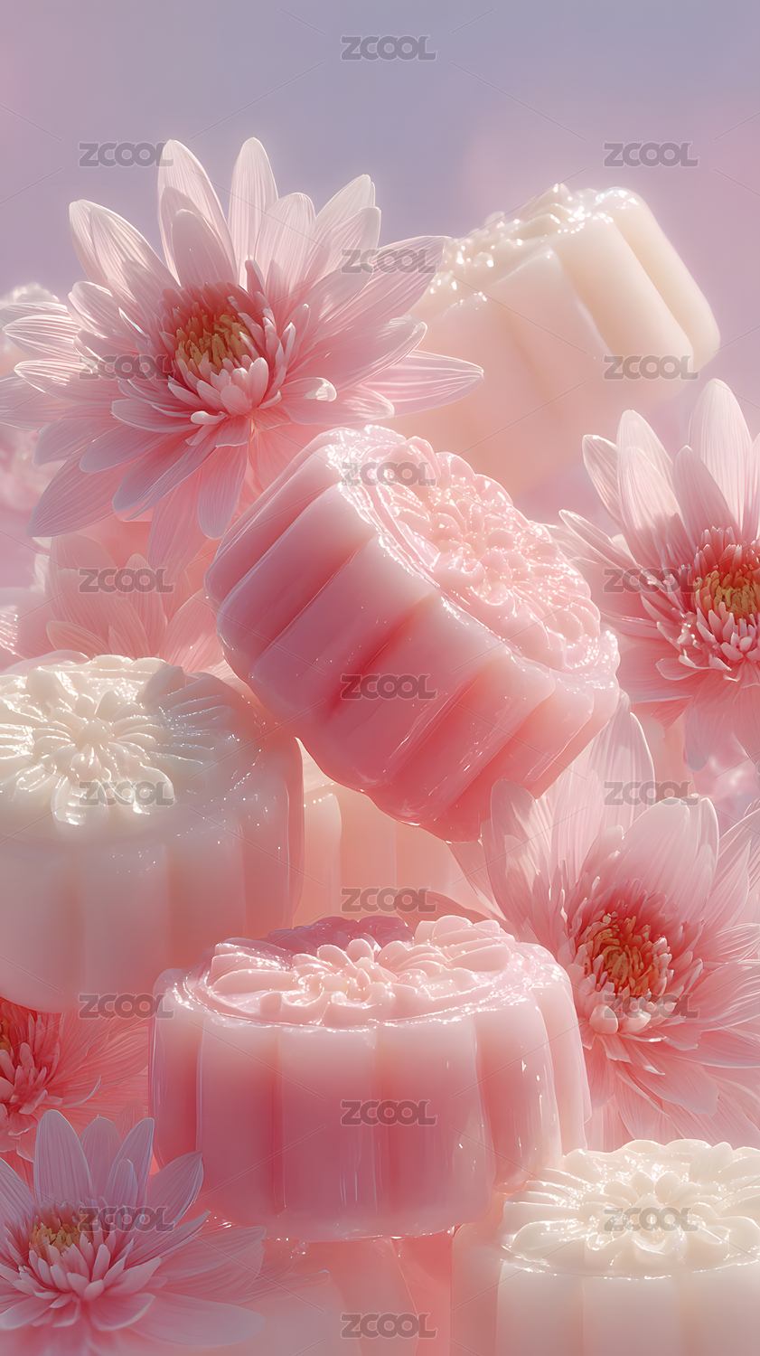 粉色浪漫晶莹剔透月饼