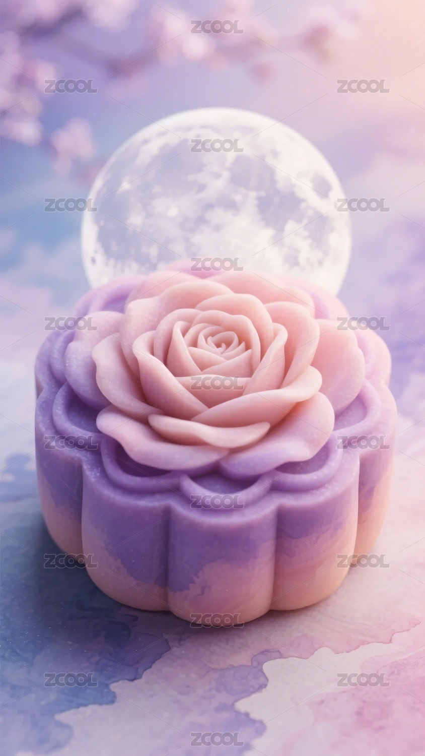 唯美渐变玫瑰月饼与圆月画面