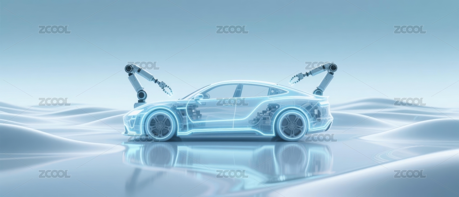 白底清澈透明蓝色玻璃汽车3D水花液体特效