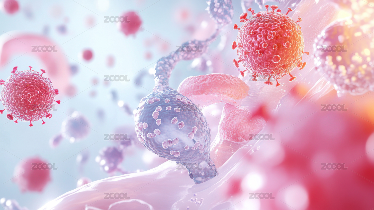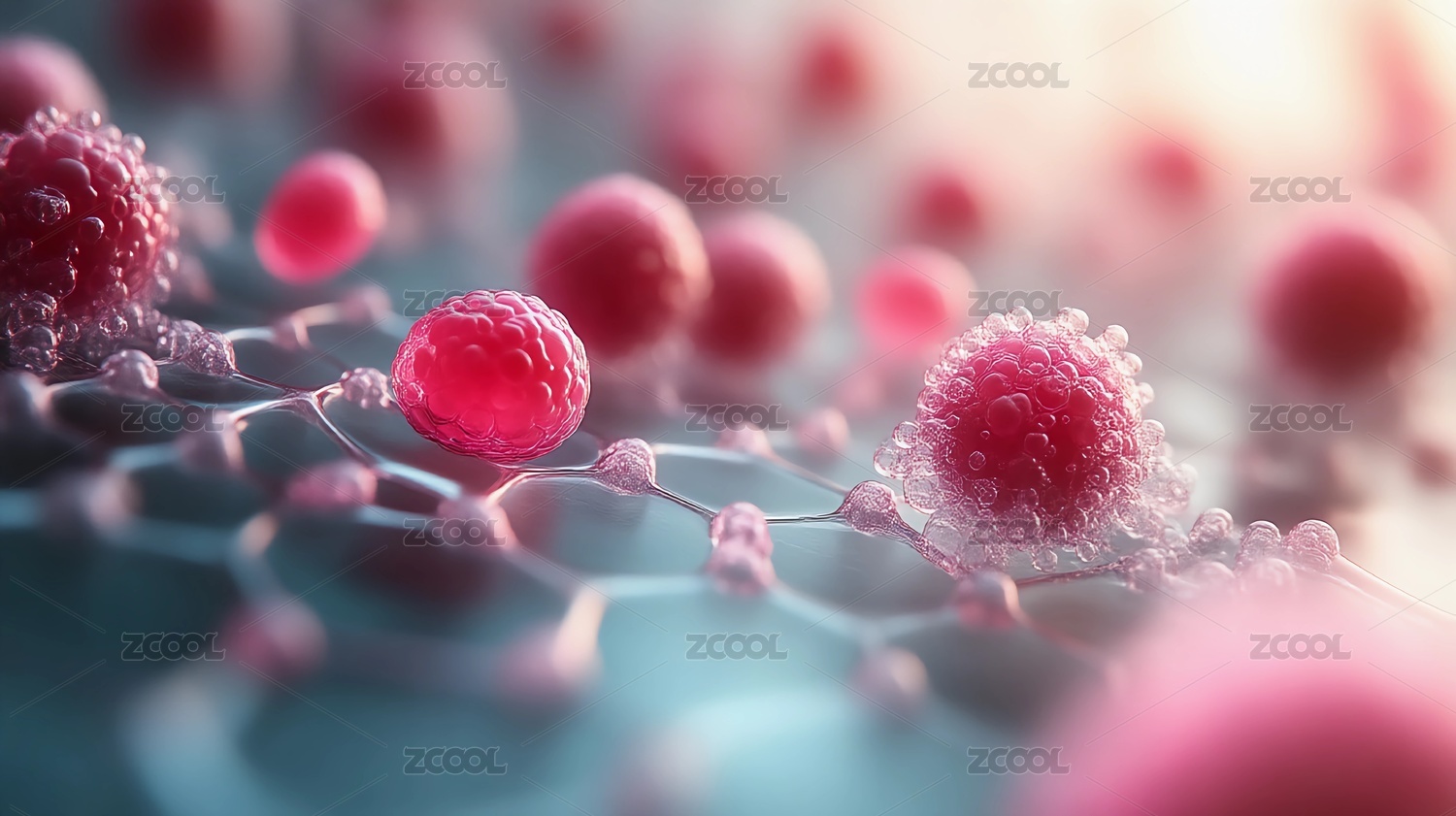 发光粉色细胞的微观画面