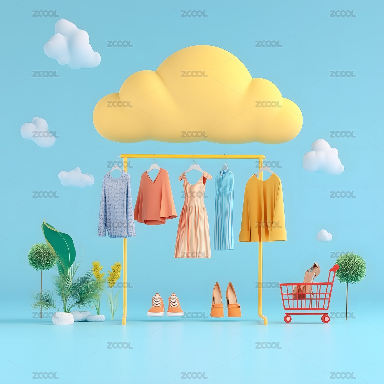 蓝色,黄色,背景,装饰,粉色,可爱,云朵,儿童,服装,展示架