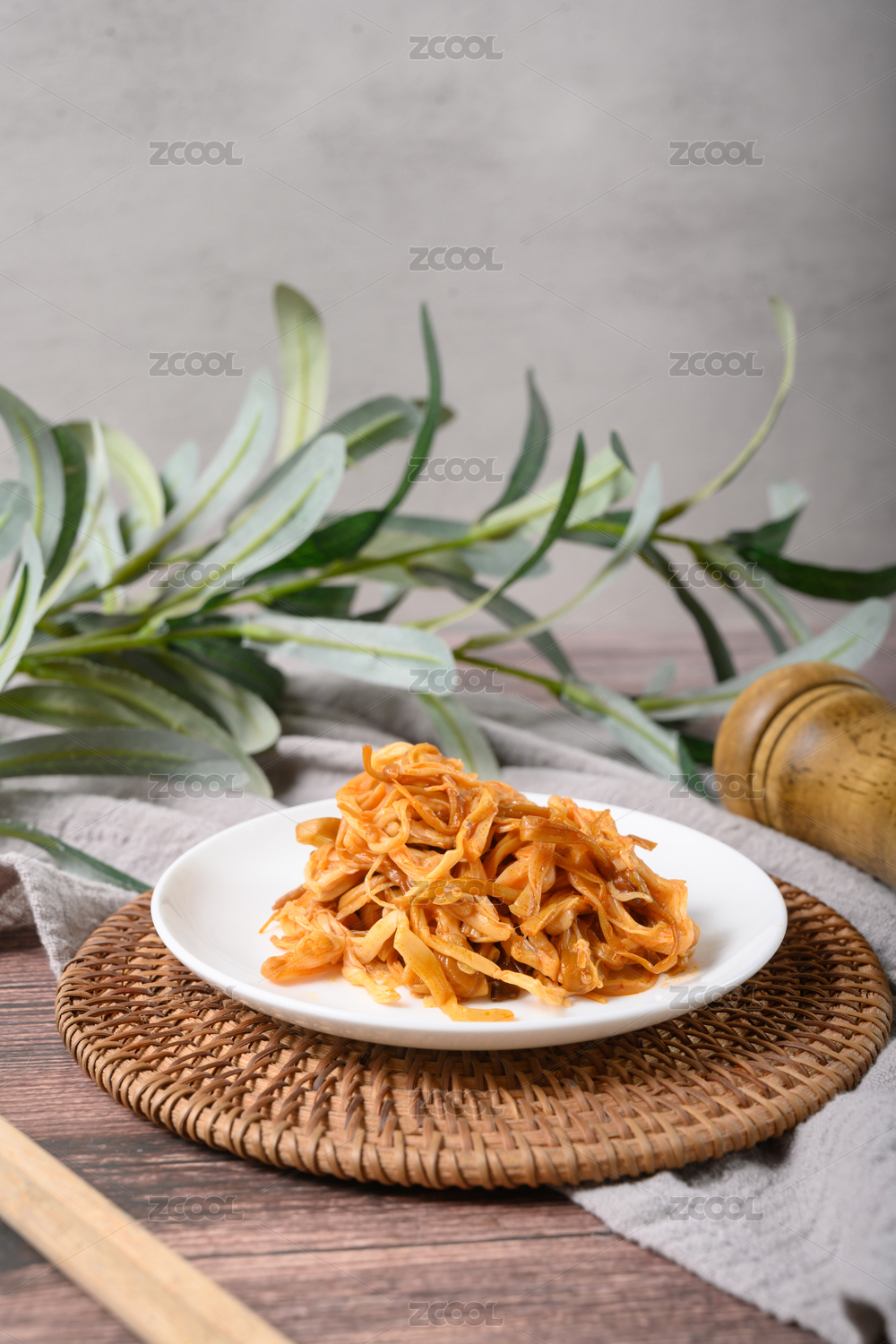 桌面上的盘子里的美味可口的凉拌折耳根