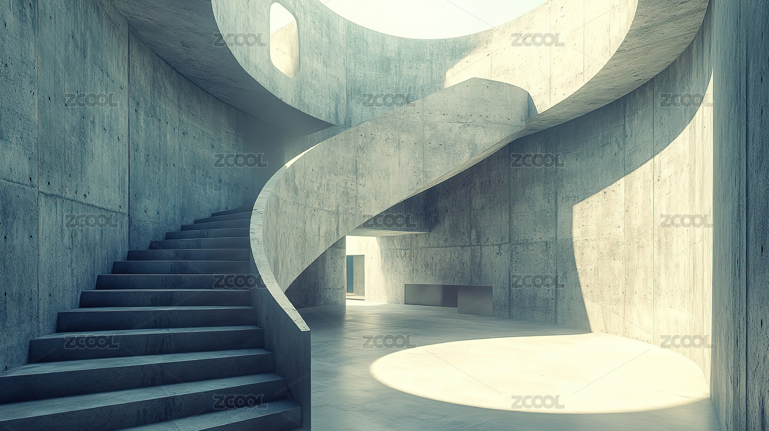 螺旋楼梯与天窗光影