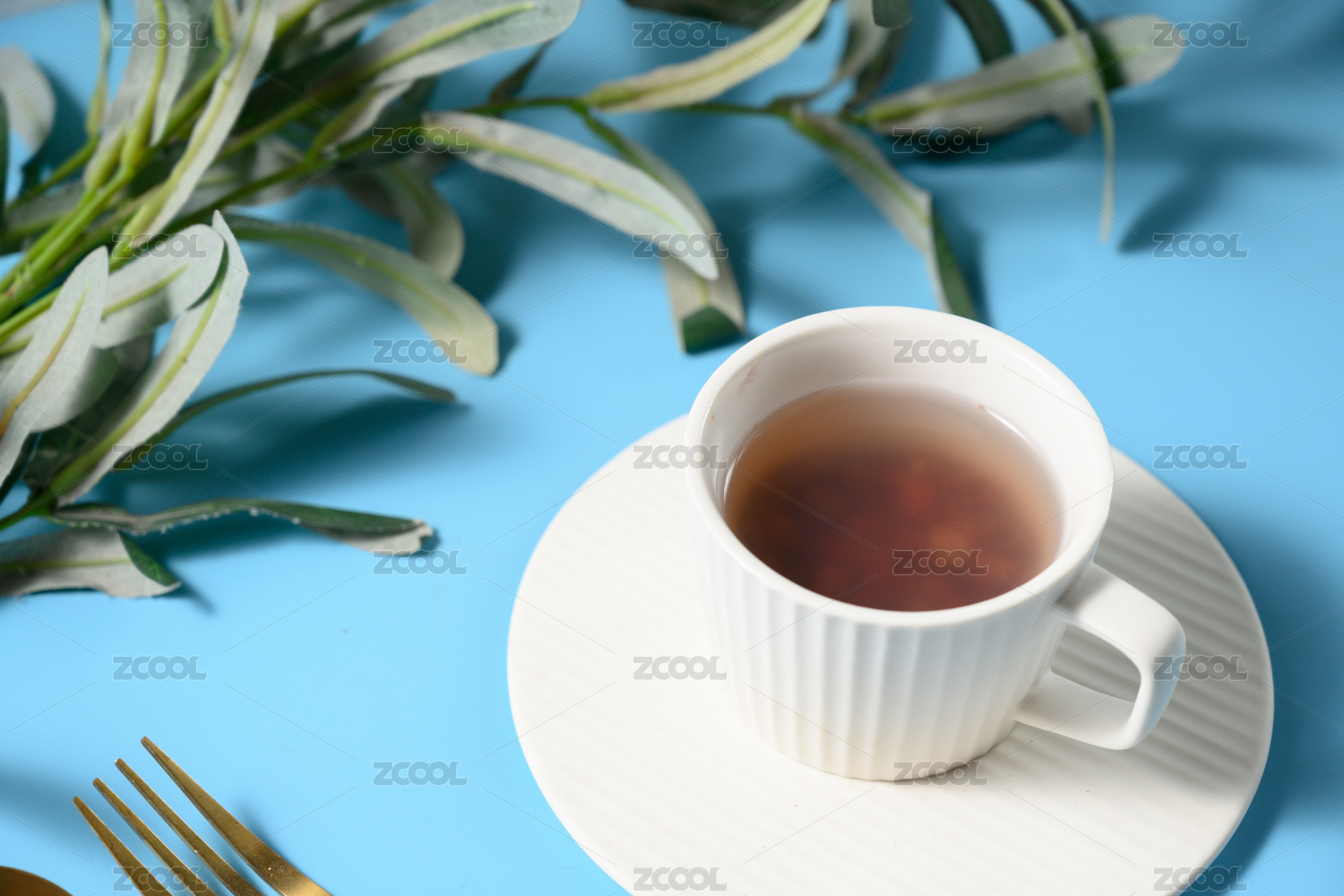 桌面上的盘子里的美味可口的咖啡果皮茶
