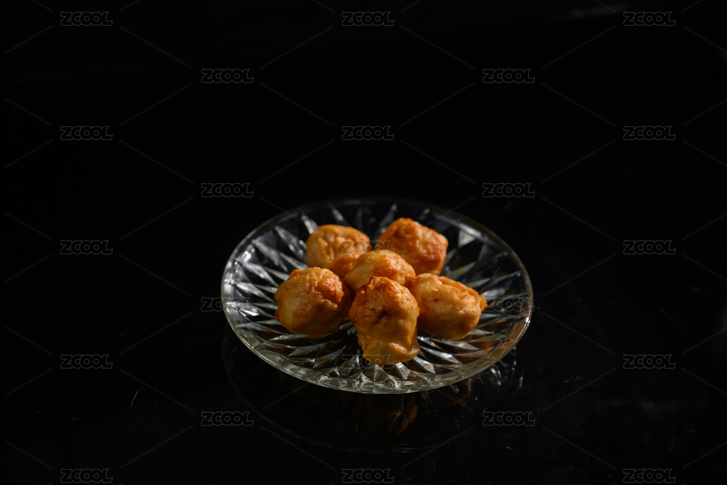 桌面上的盘子里的美味可口的炸杏鲍菇