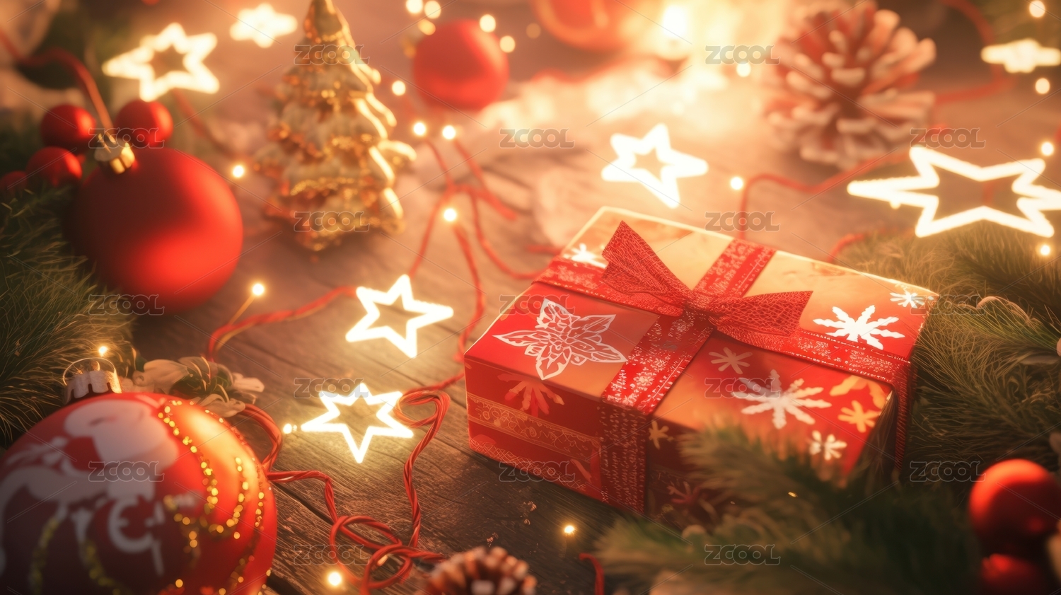 圣诞节,圣诞,圣诞树,彩灯,礼物盒,冬青叶,红果,雪花,节日,温馨