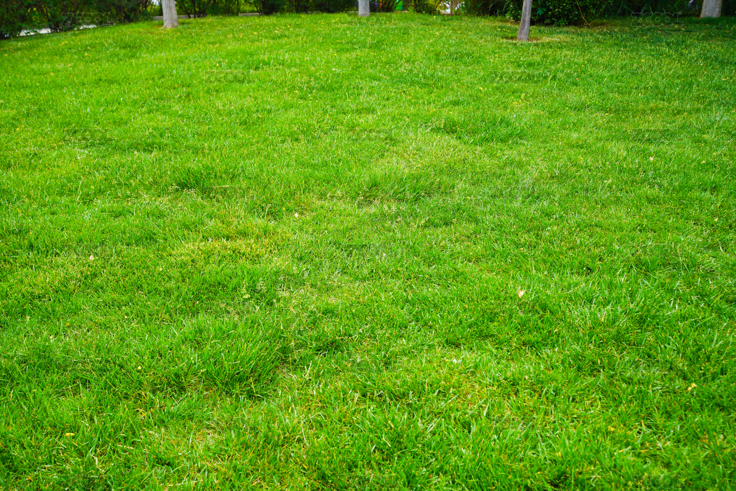 绿色草坪上的几棵小灌木