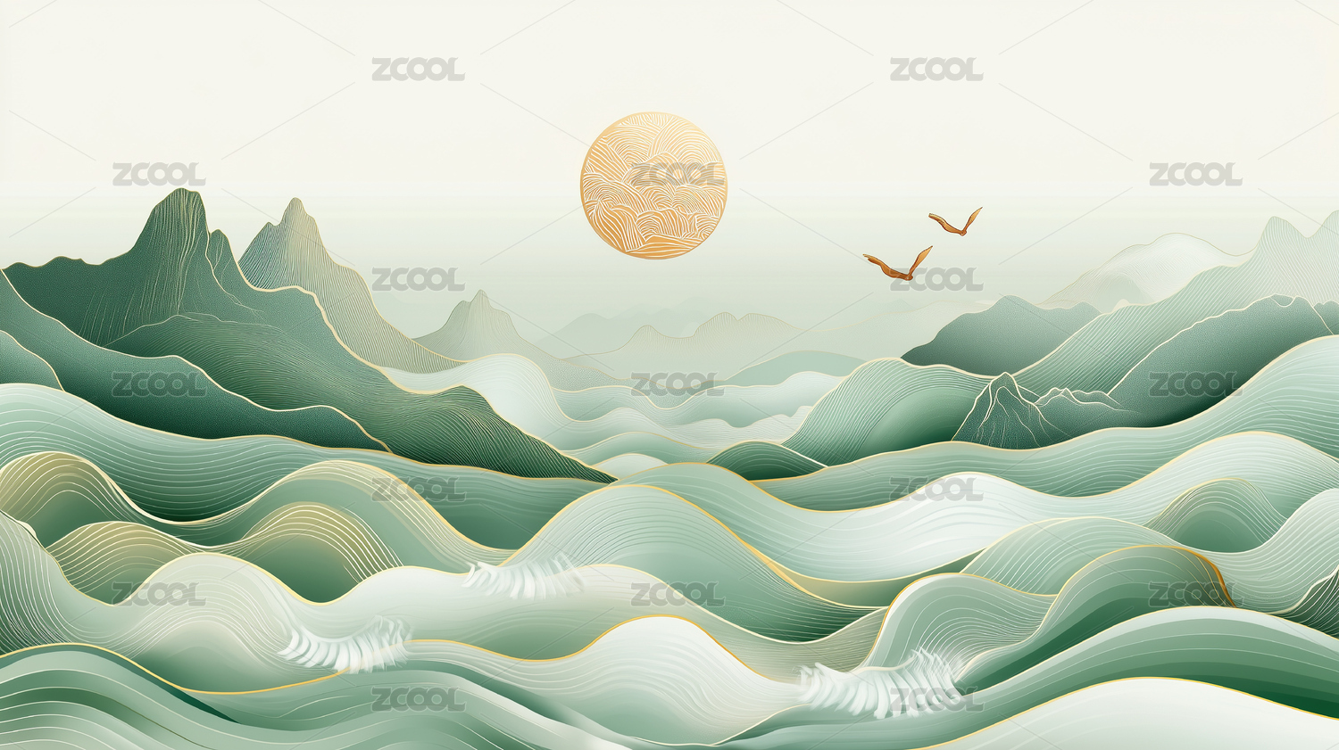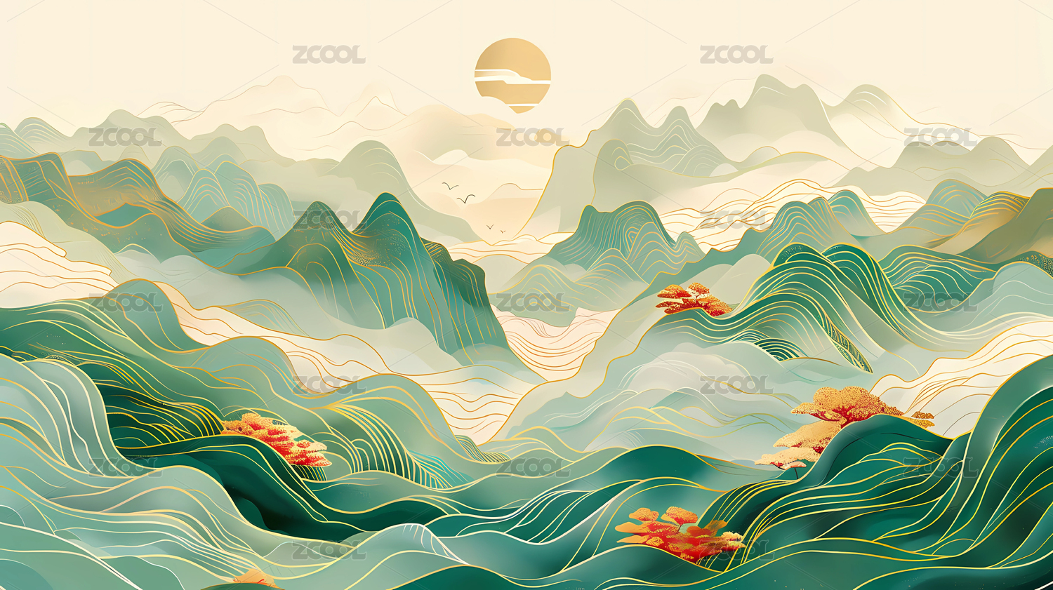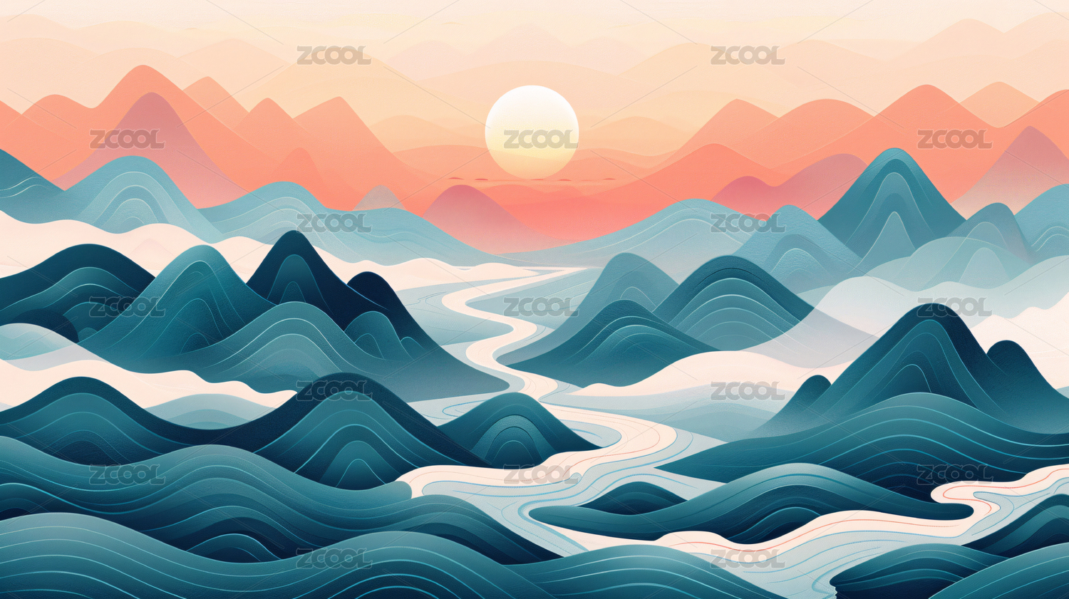 中国风古楼建筑传统国风古建筑国潮插画背景