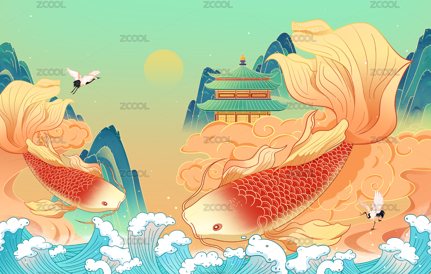 中国风鲤鱼跃龙门