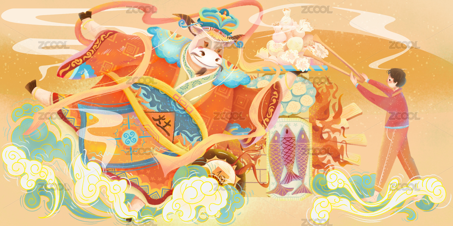 新年习俗牛年祭灶插画