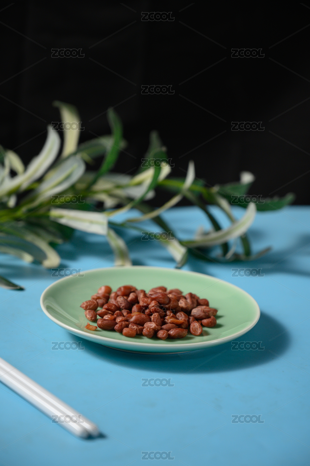 桌面上的盘子里的美味可口的香焖花生