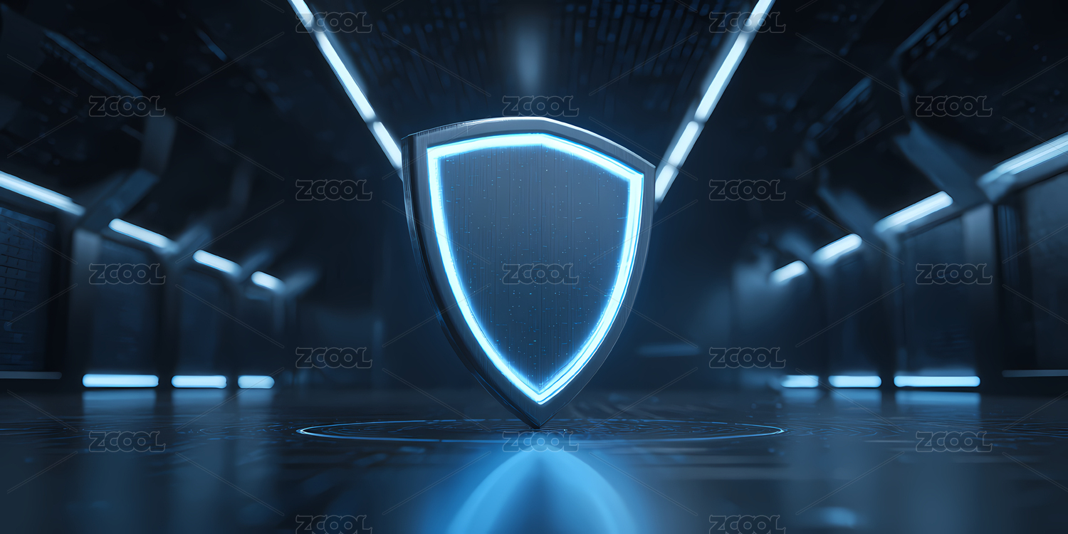 未来科技走廊中的发光盾牌