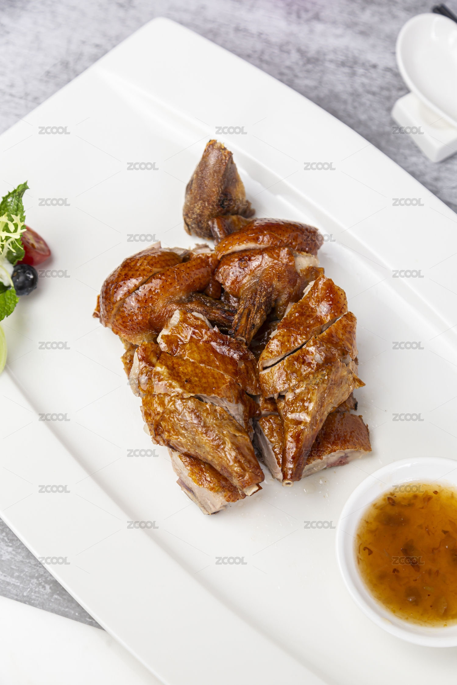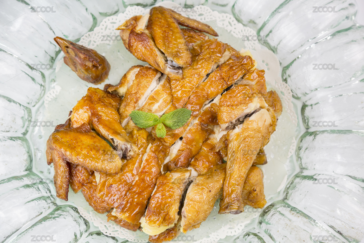 中国传统菜品香酥烧鸡盛放在白色瓷盘上