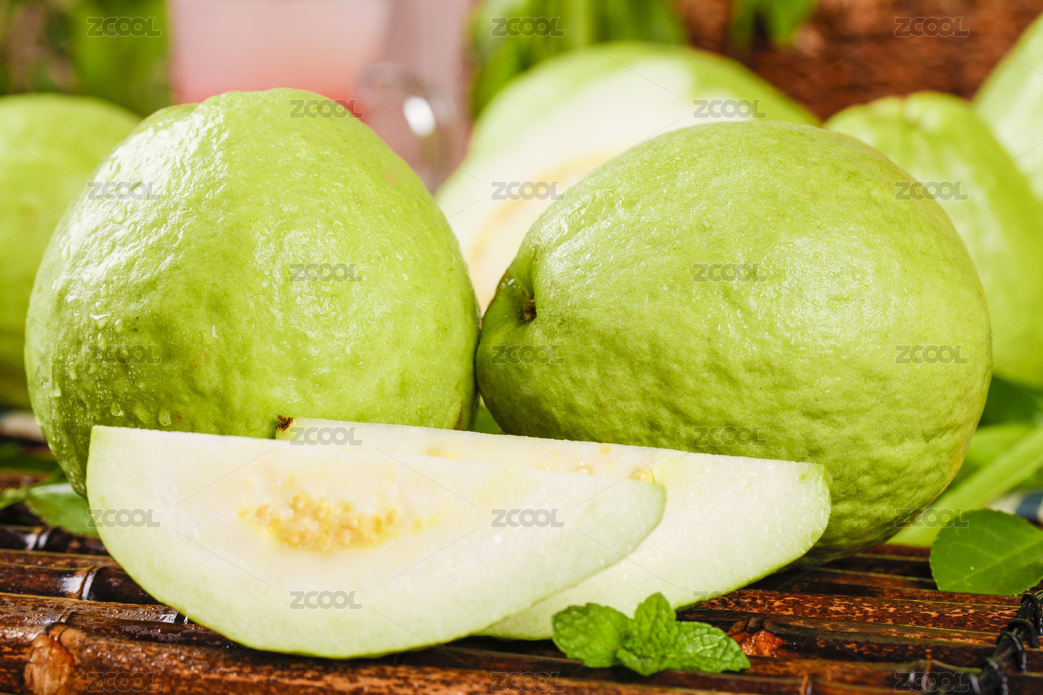 一堆新鲜白心番石榴和番石榴果肉