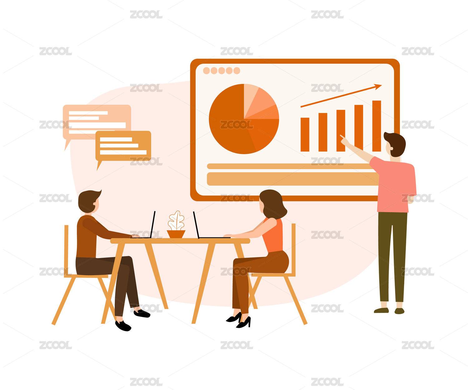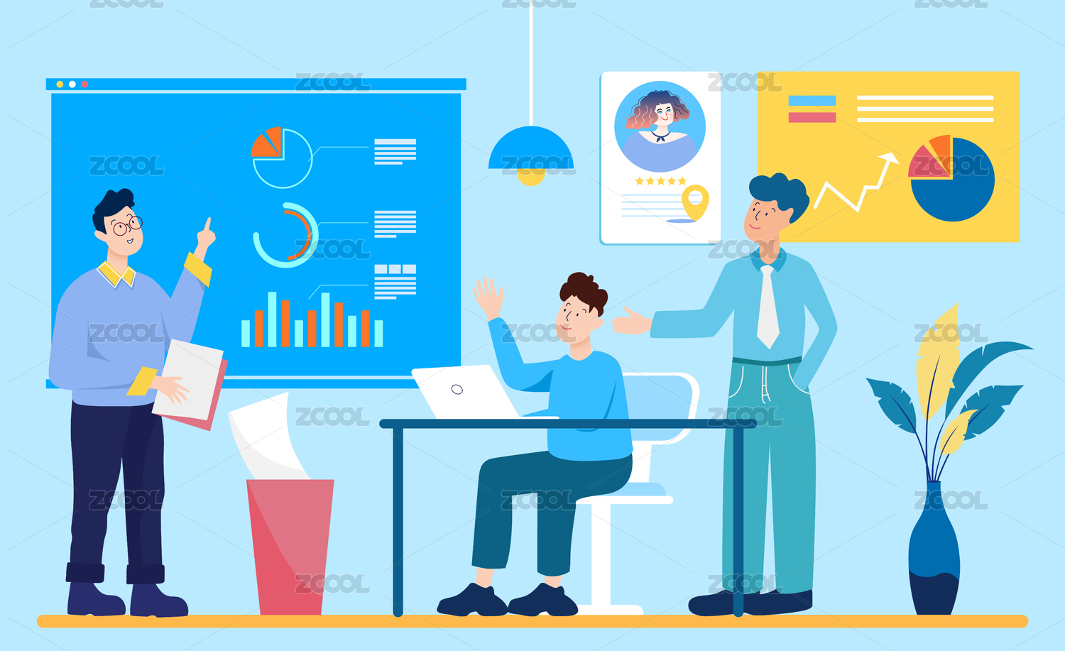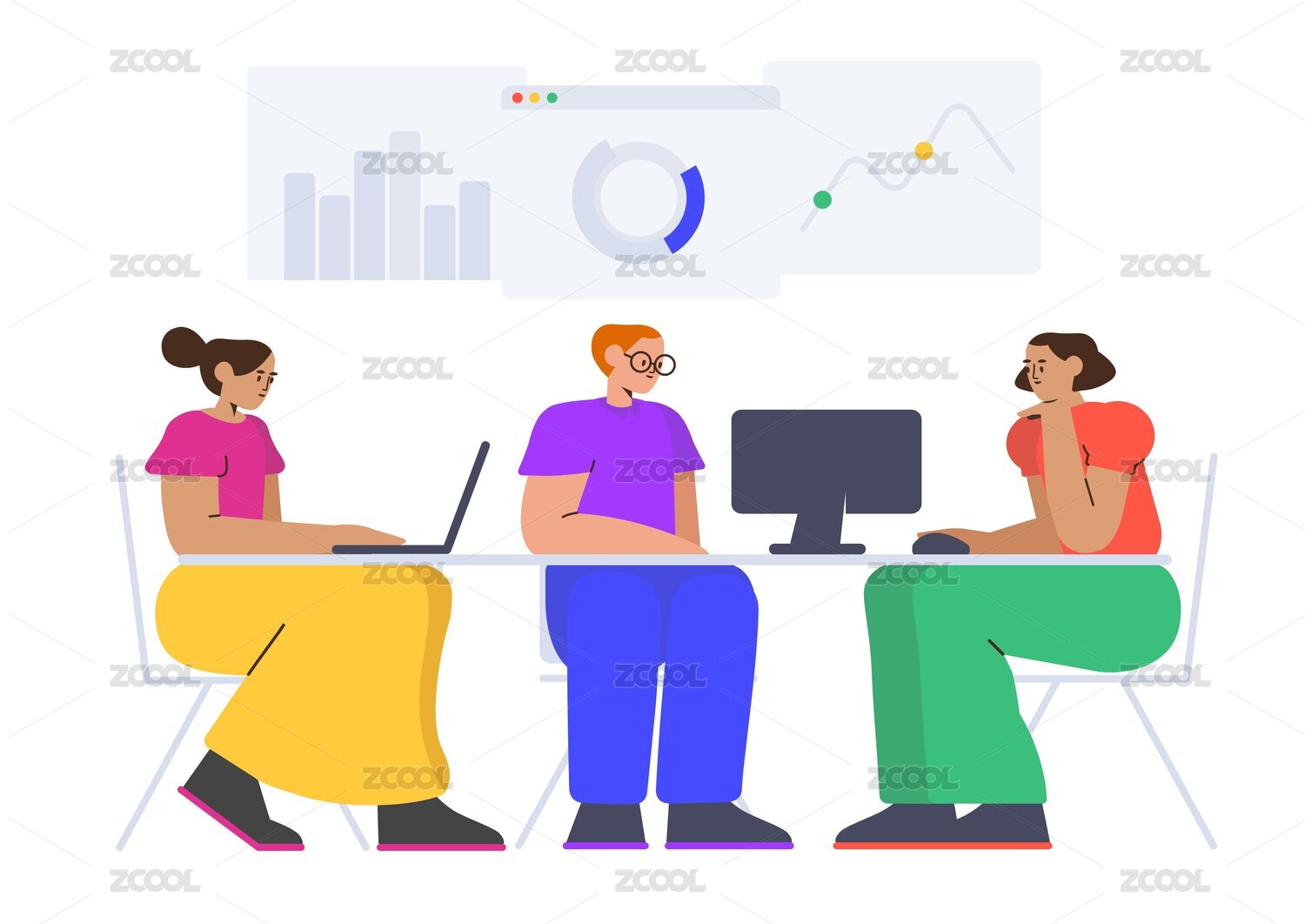 白领线上协作一起完成工作提高效率清新,矢量扁平概念插画