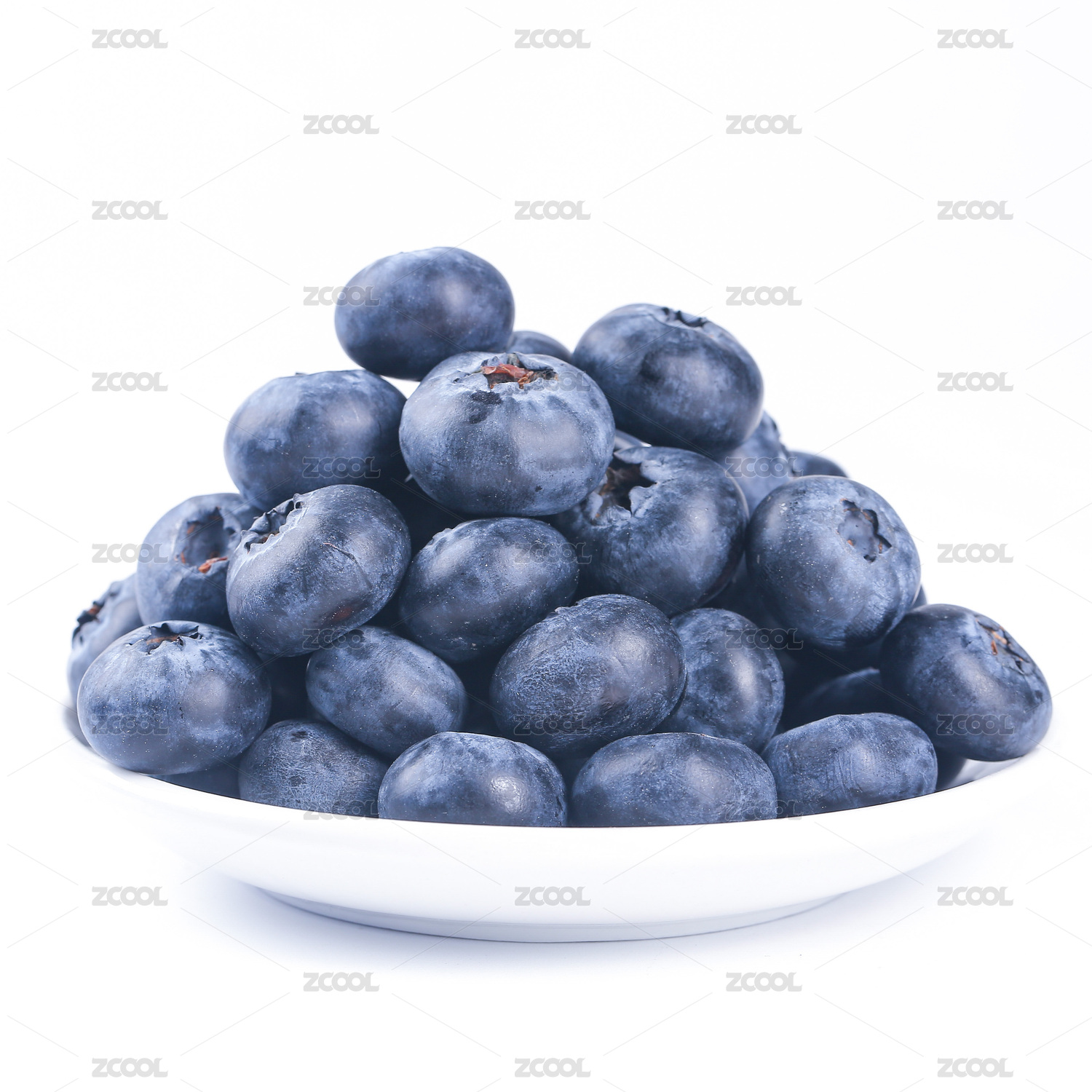 白底上放着一盘蓝莓鲜果