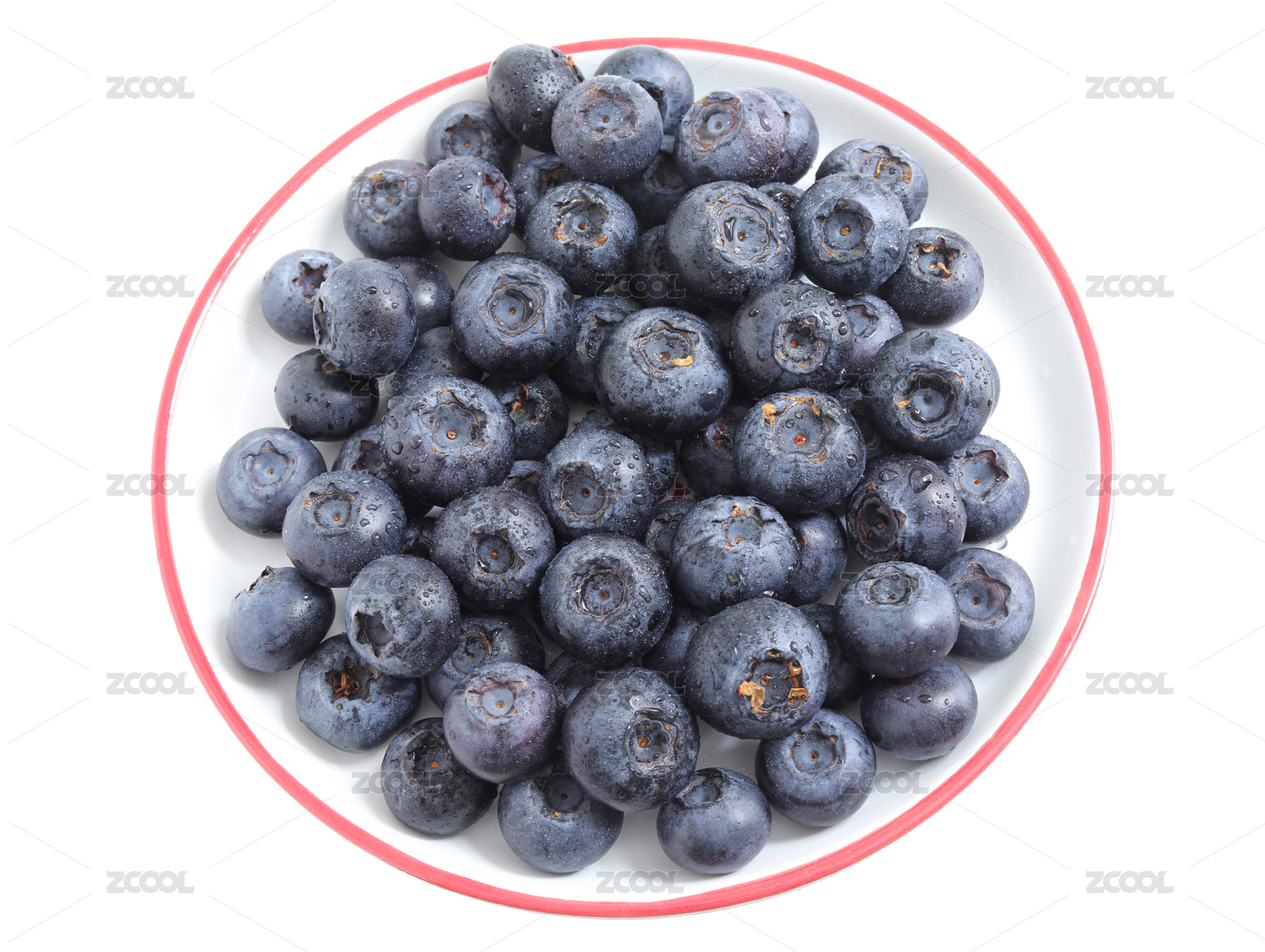 一盘子新鲜水果蓝莓特写的白底图