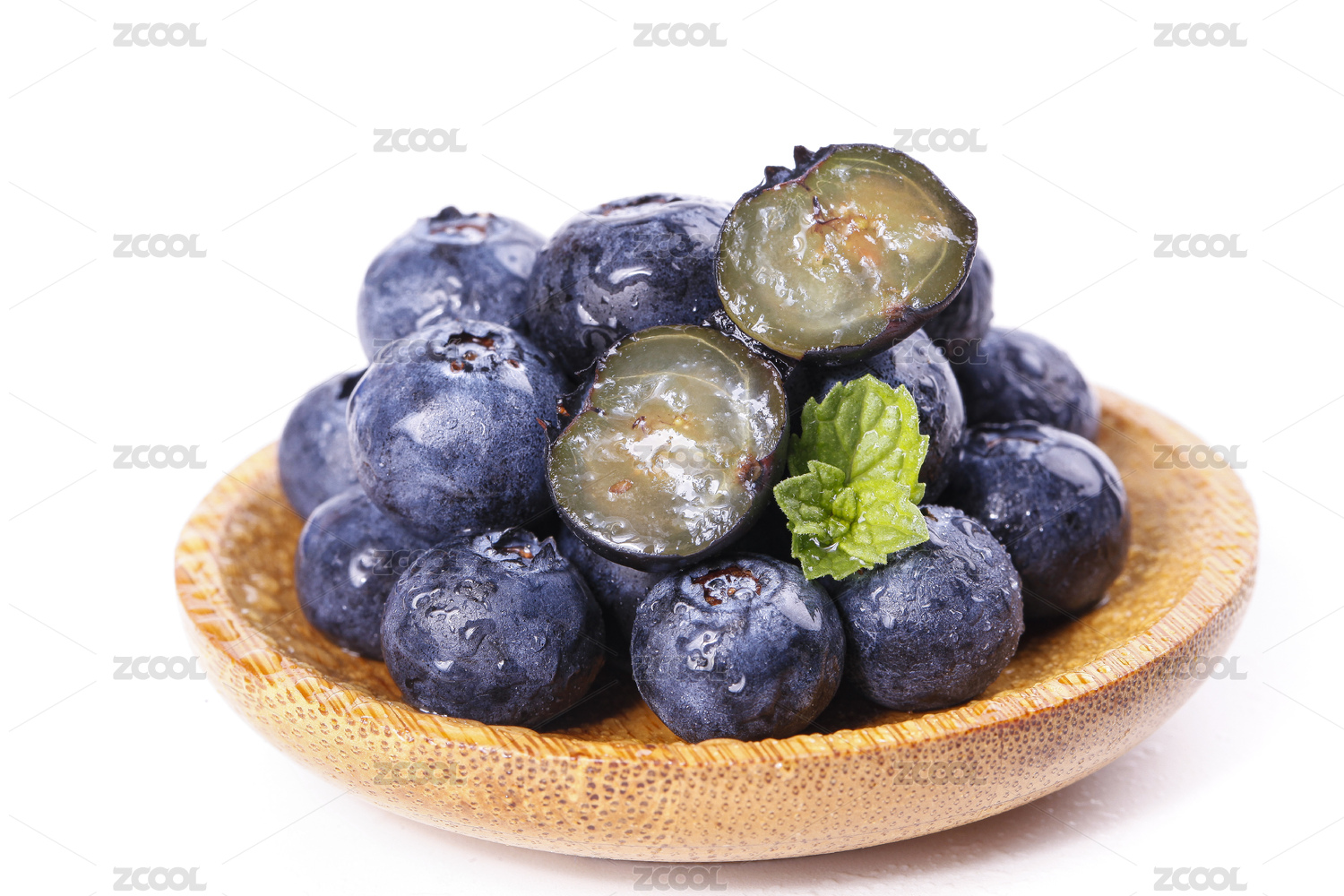 新鲜的切开的蓝莓