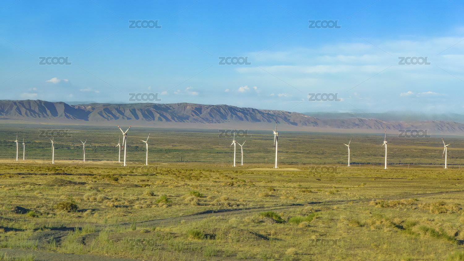 中国新疆维吾尔自治区准噶尔盆地大片的风力车