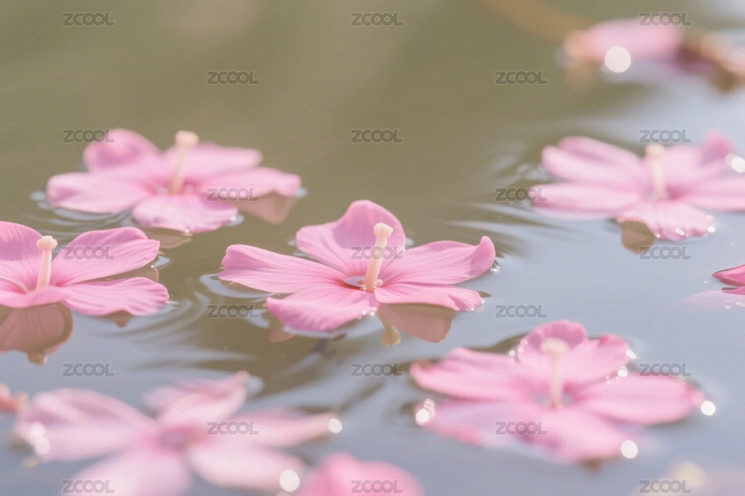 一朵橘红色的玫瑰花浮在水面上泛起波纹