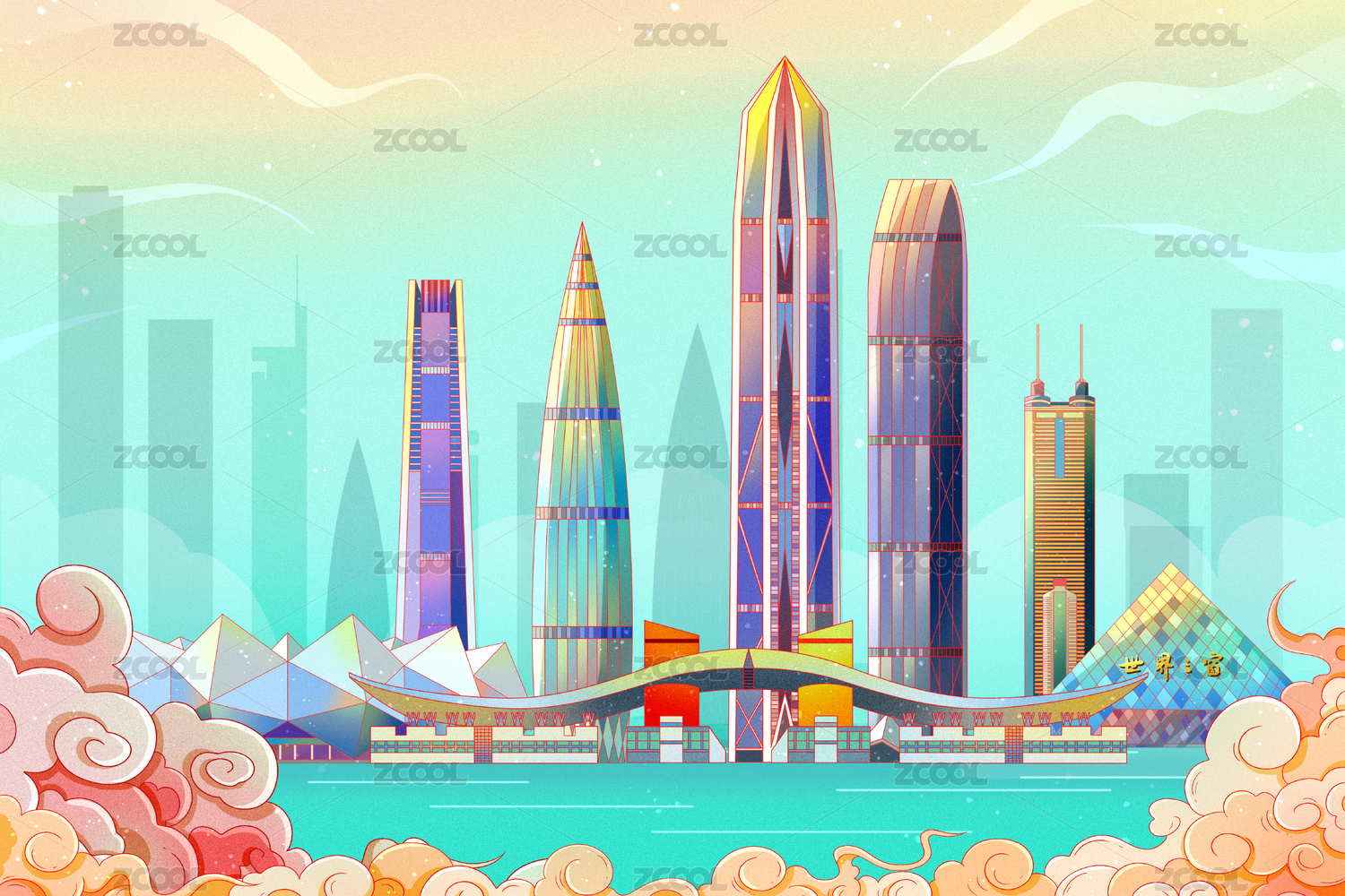 深圳卷轴山水画中国风城市复古打卡地标旅游