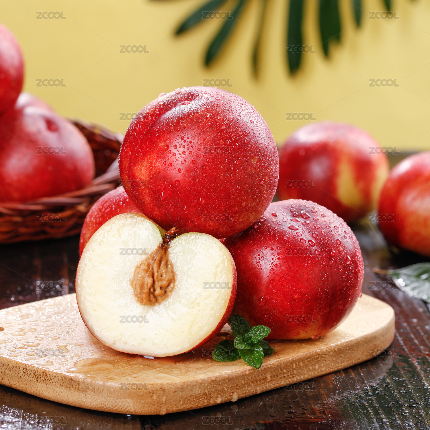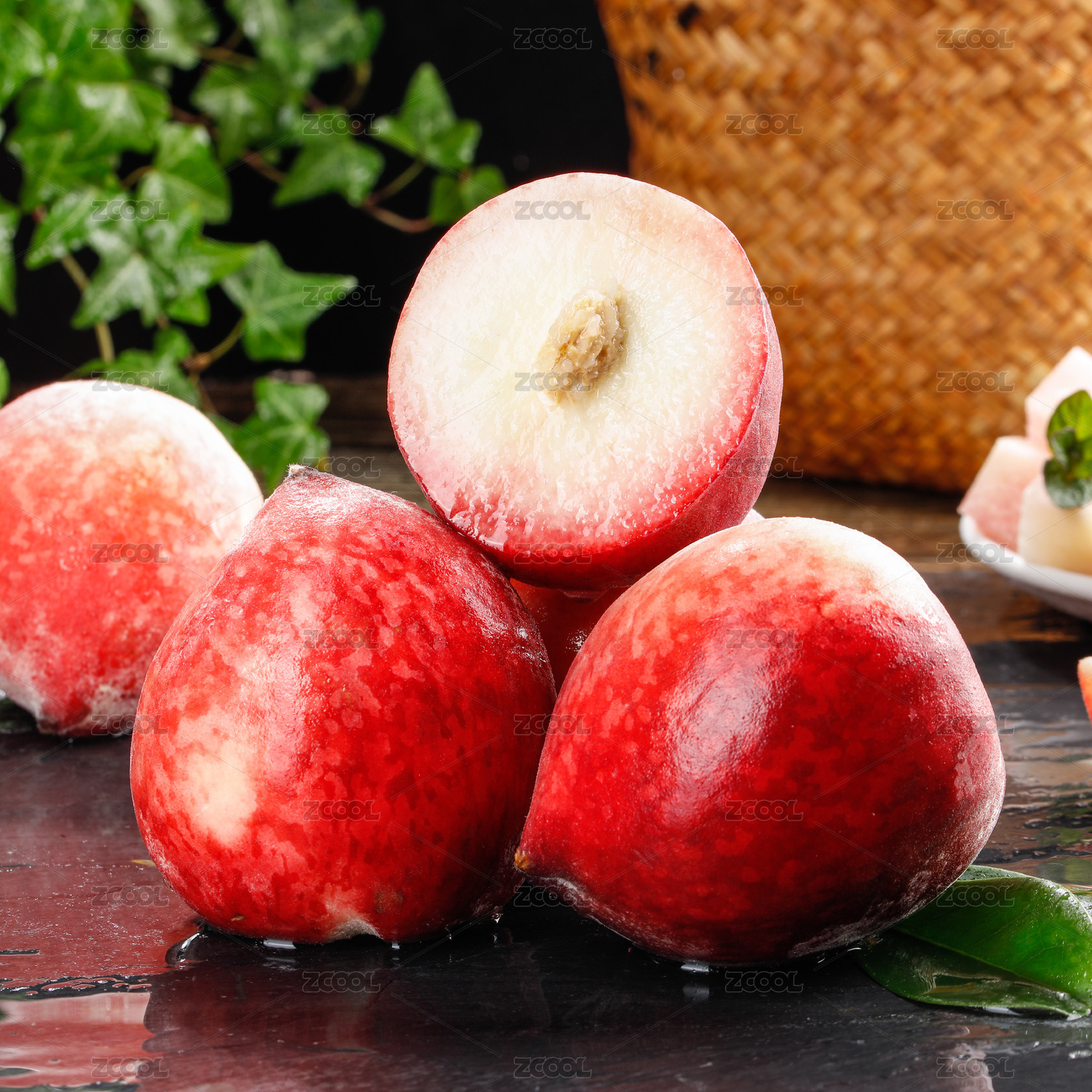 黑底上两个完整的陕西水蜜桃和半边蜜桃