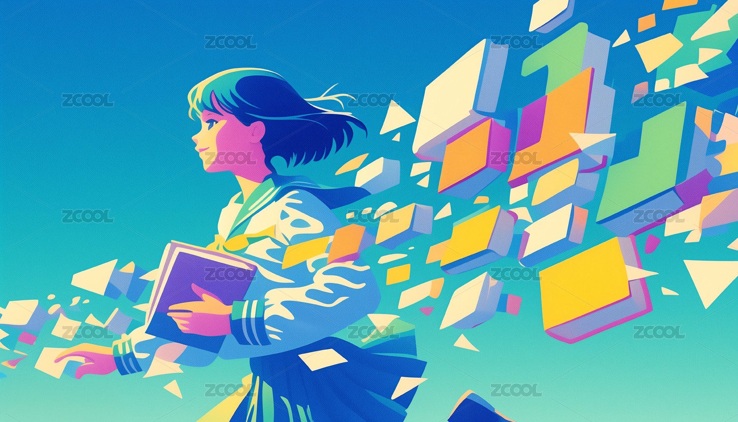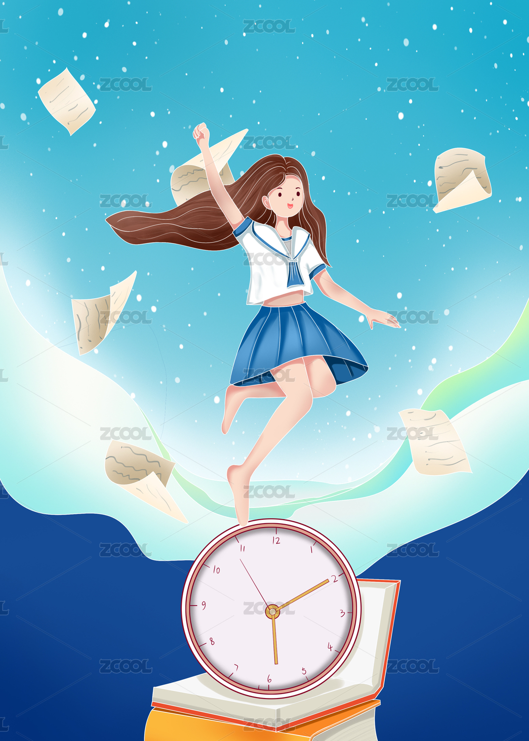 书籍,女生,蓝色,学生,高考,考试,背影,文具,插画,卡通