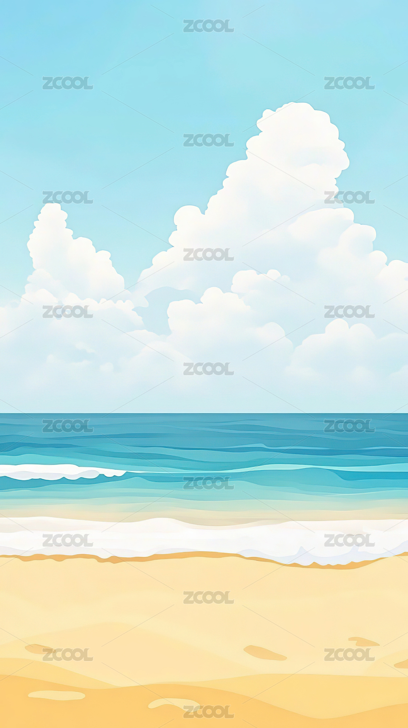 大海天空蓝天白云卡通插画