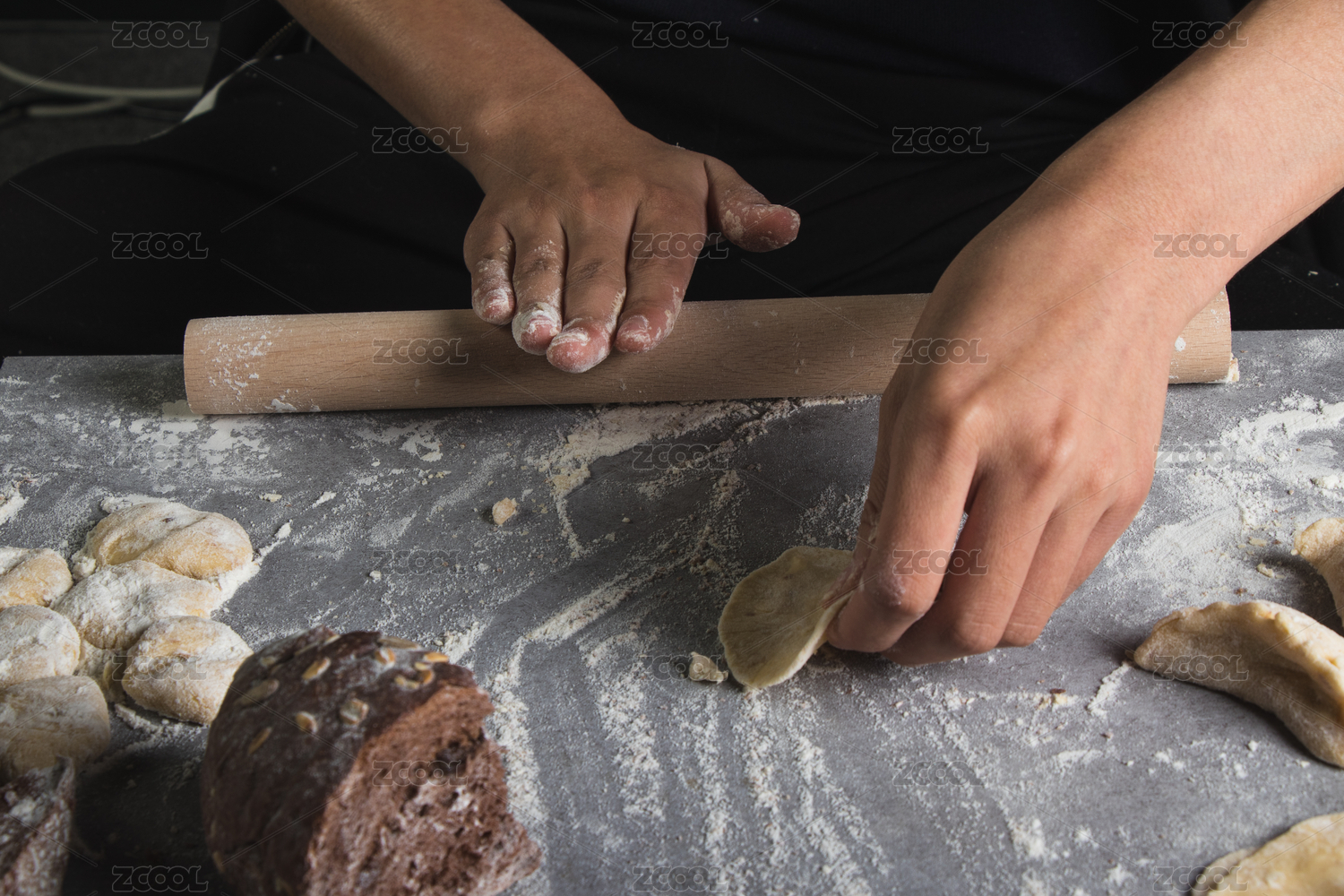 木桌子上用月饼模具,擀面杖等手工制作月饼