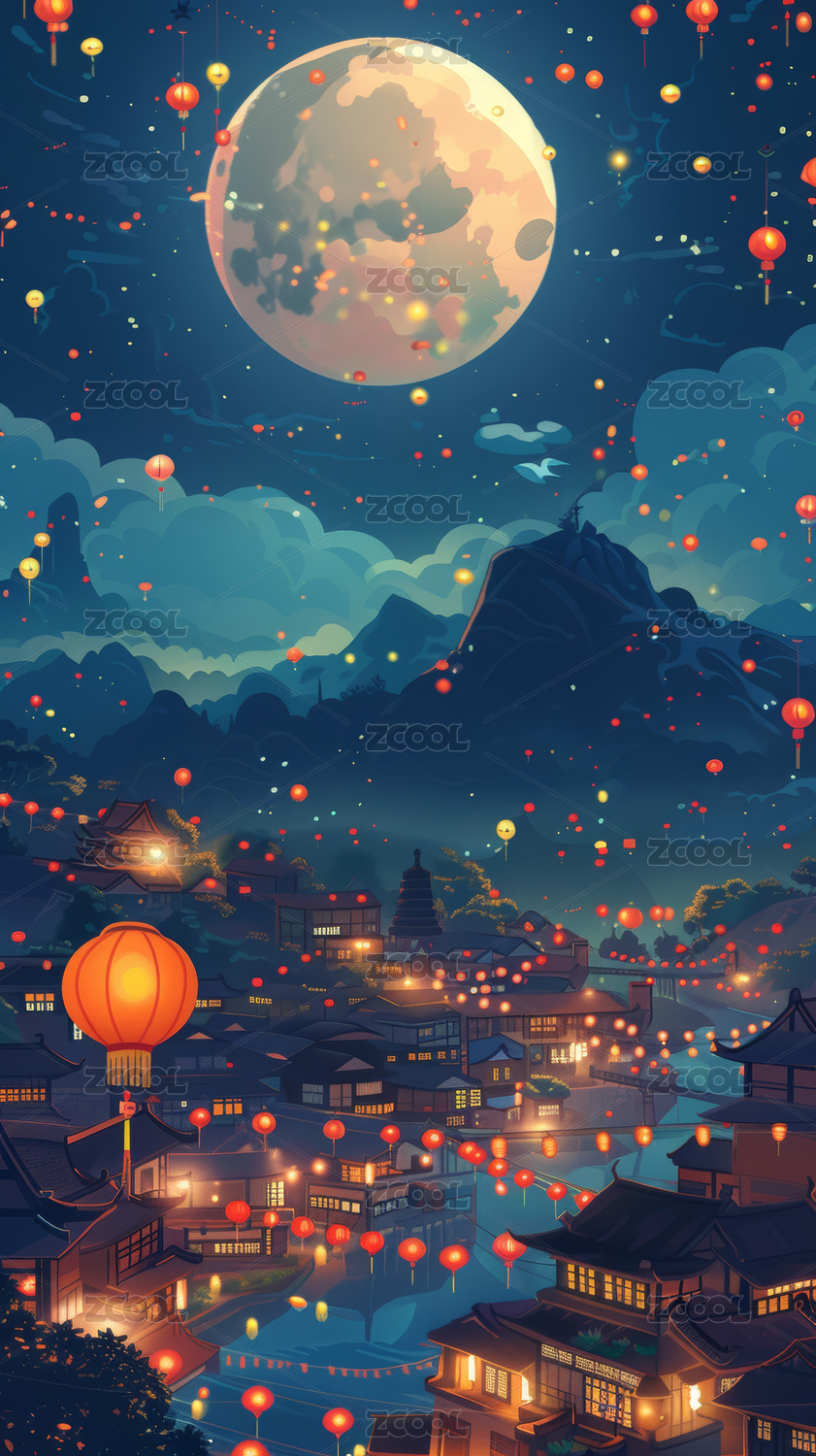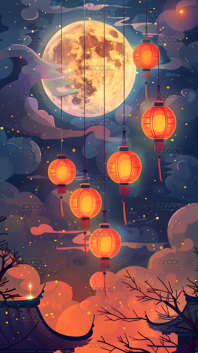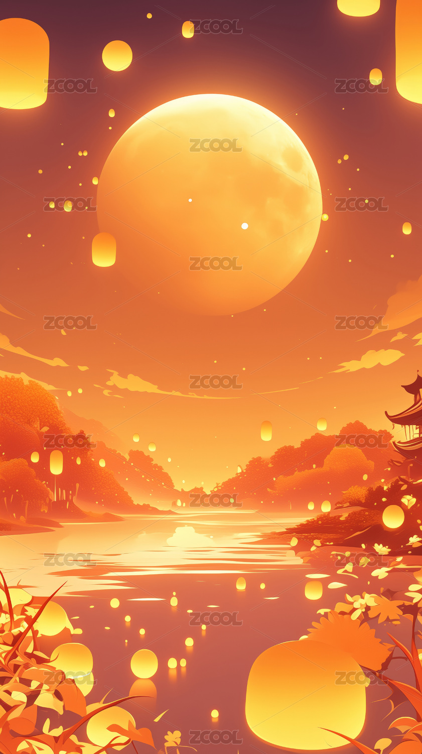 无人,天空,地形,插画,风景,多色的,剪影,季节,月亮,户外