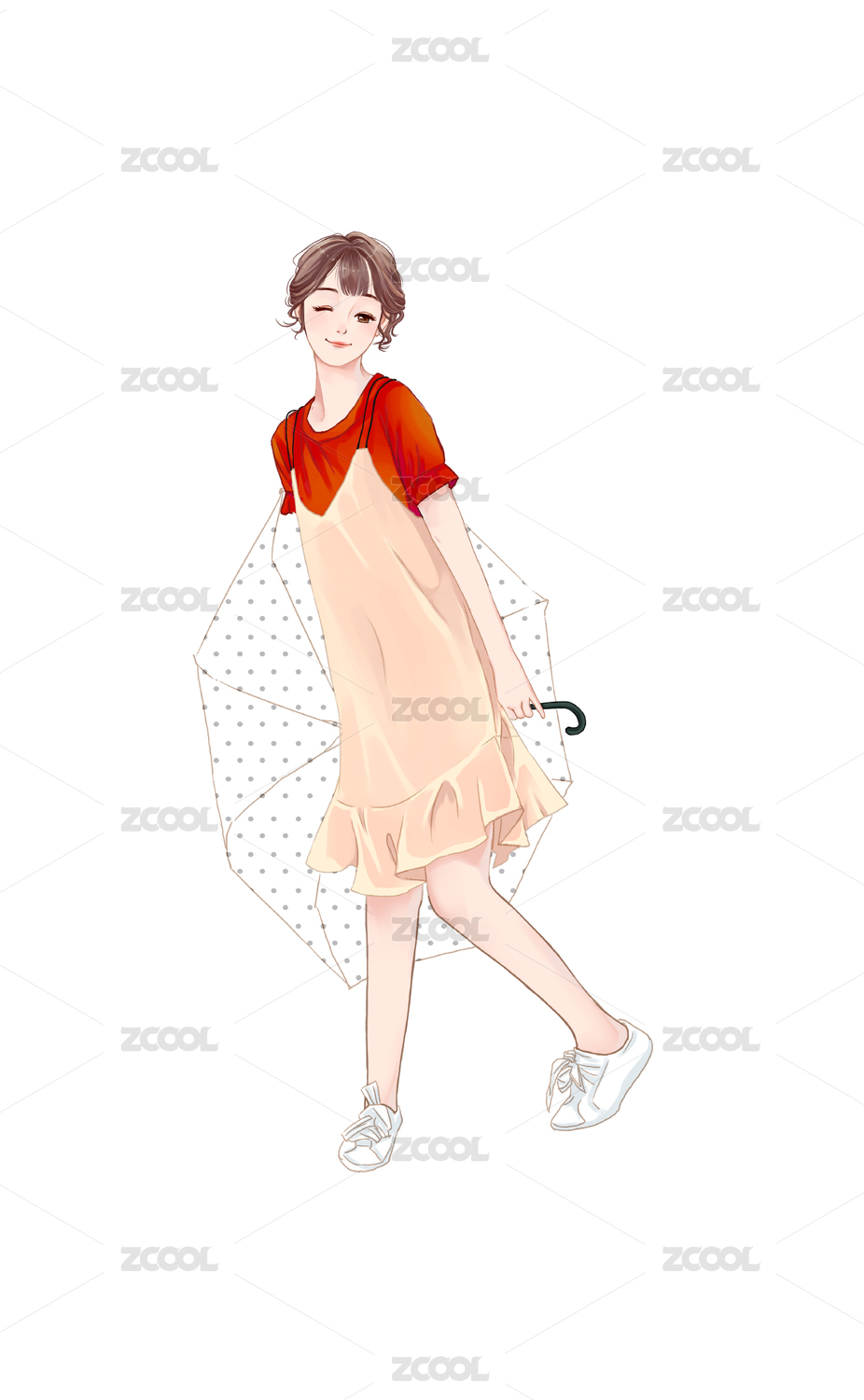 穿吊带裙拿雨伞的少女