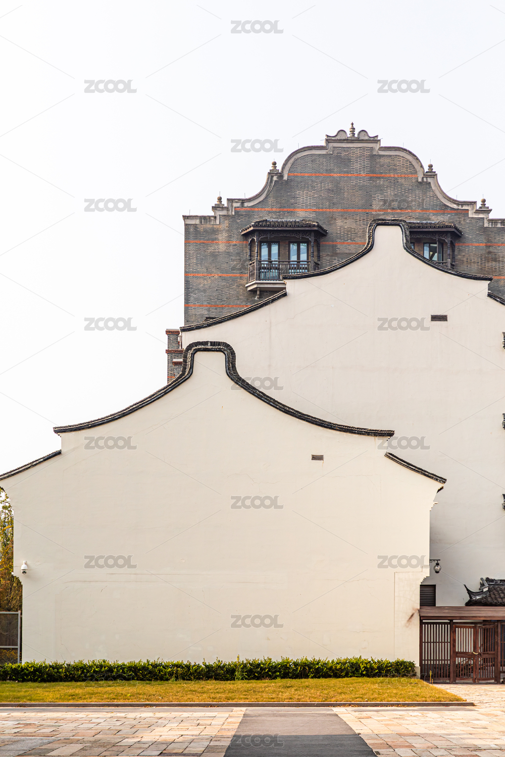 江苏苏州古镇白墙黑瓦江南建筑风光