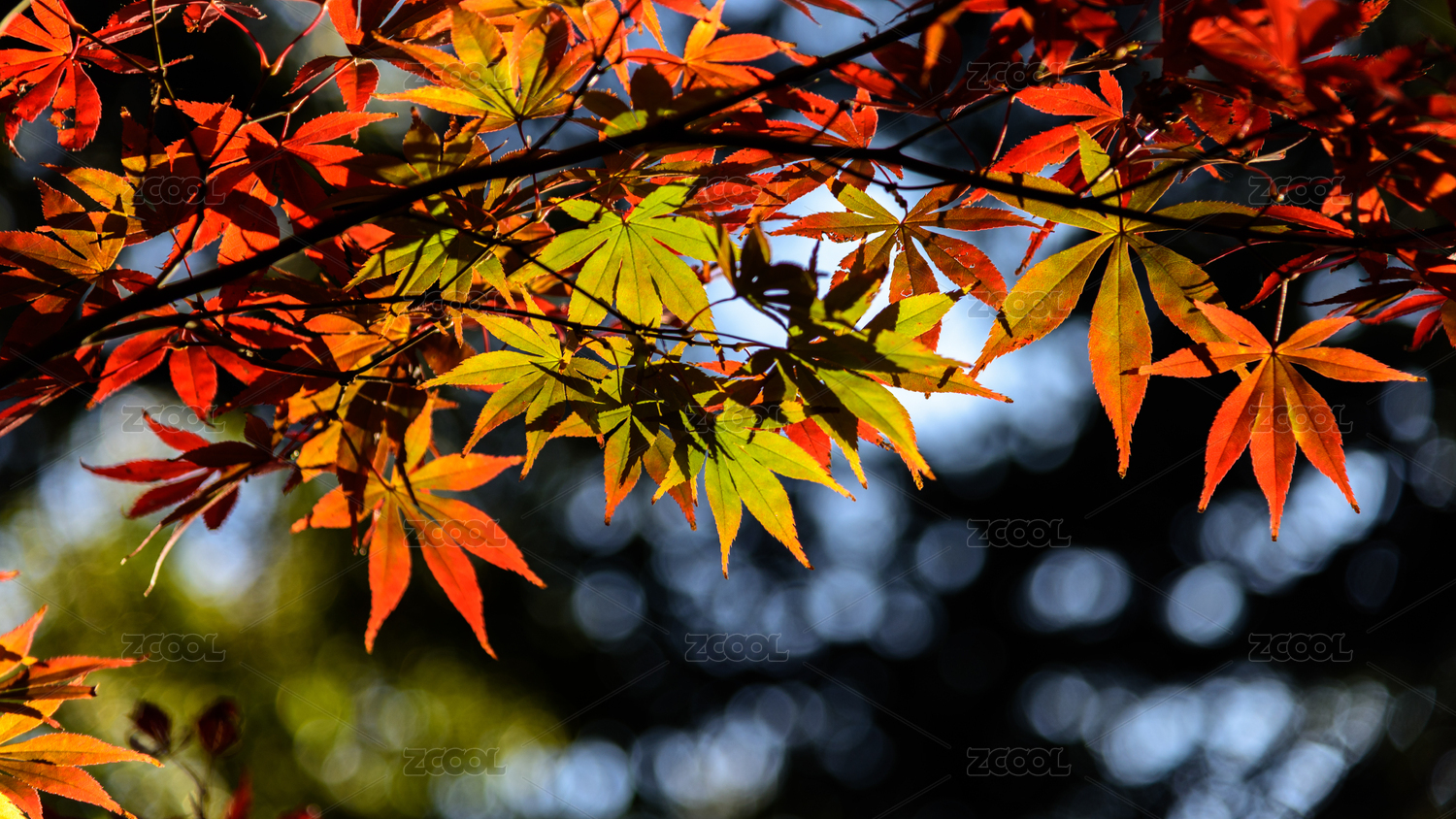 秋天迎着阳光熠熠生辉的枫叶