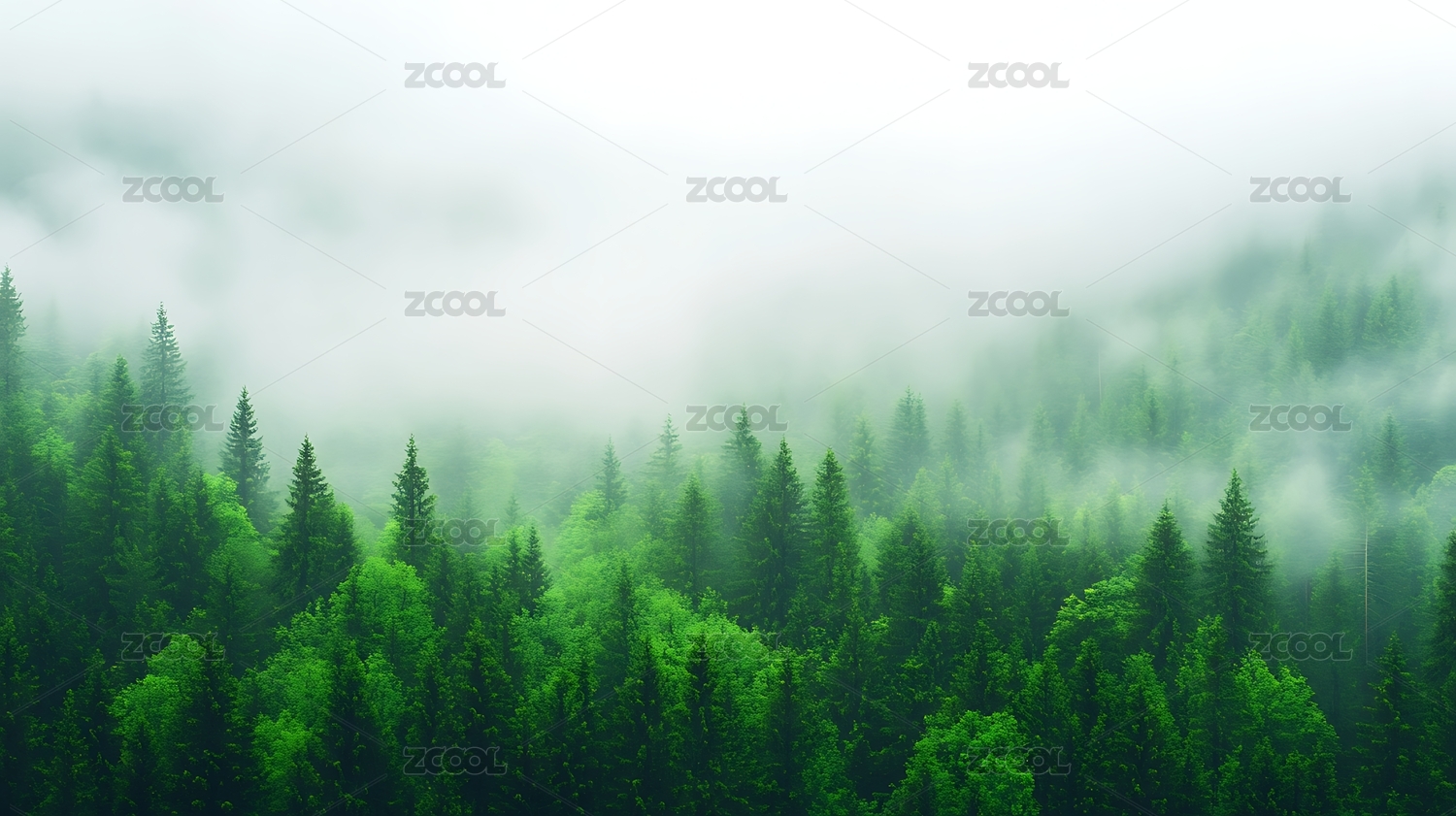 中国新疆伊犁库尔德宁云杉林夏季雨后风景