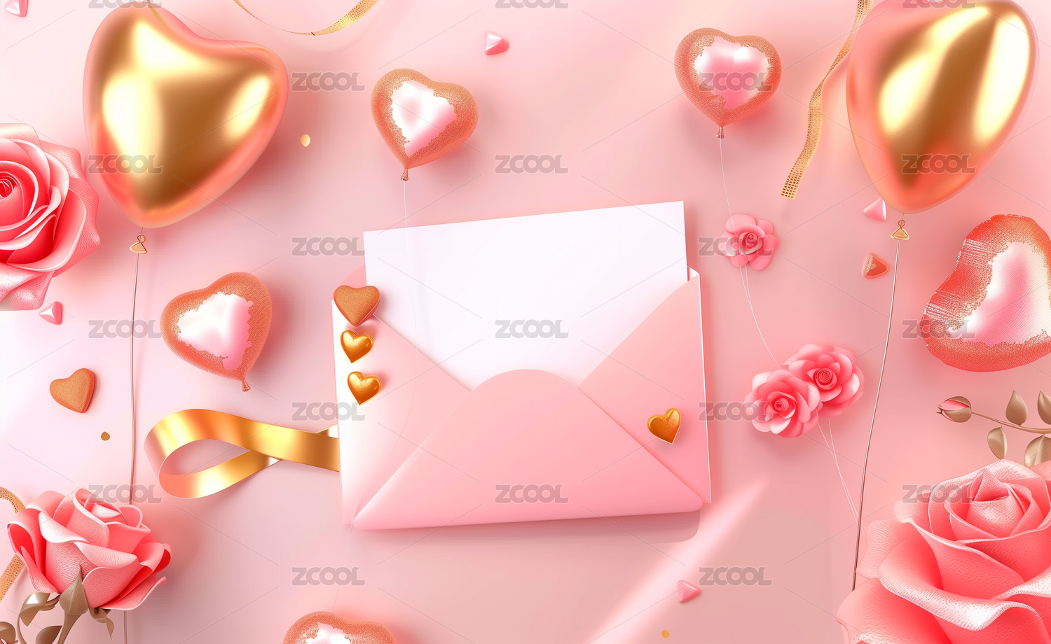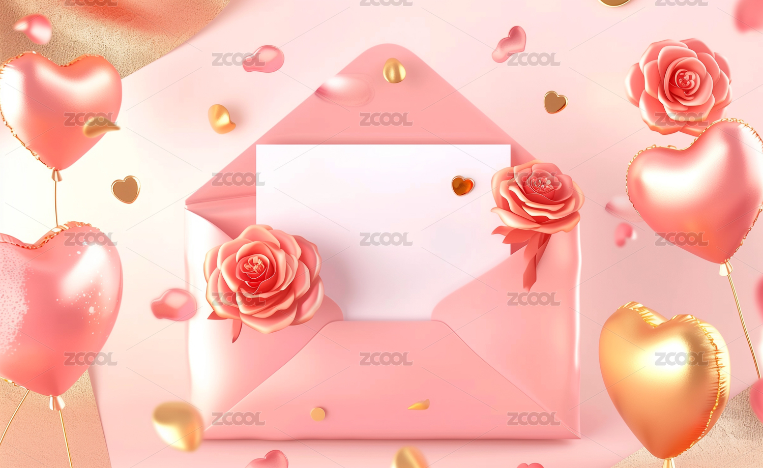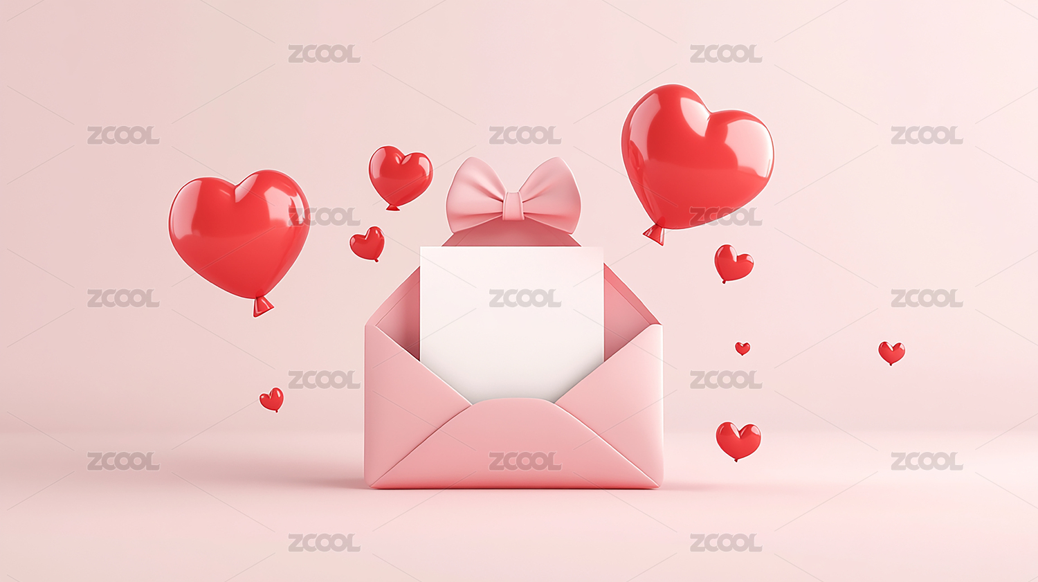 卡通情人节情书请柬婚礼文案模板3D渲染