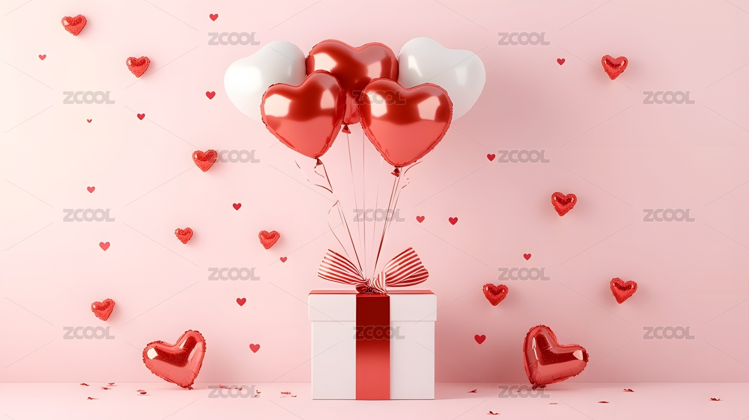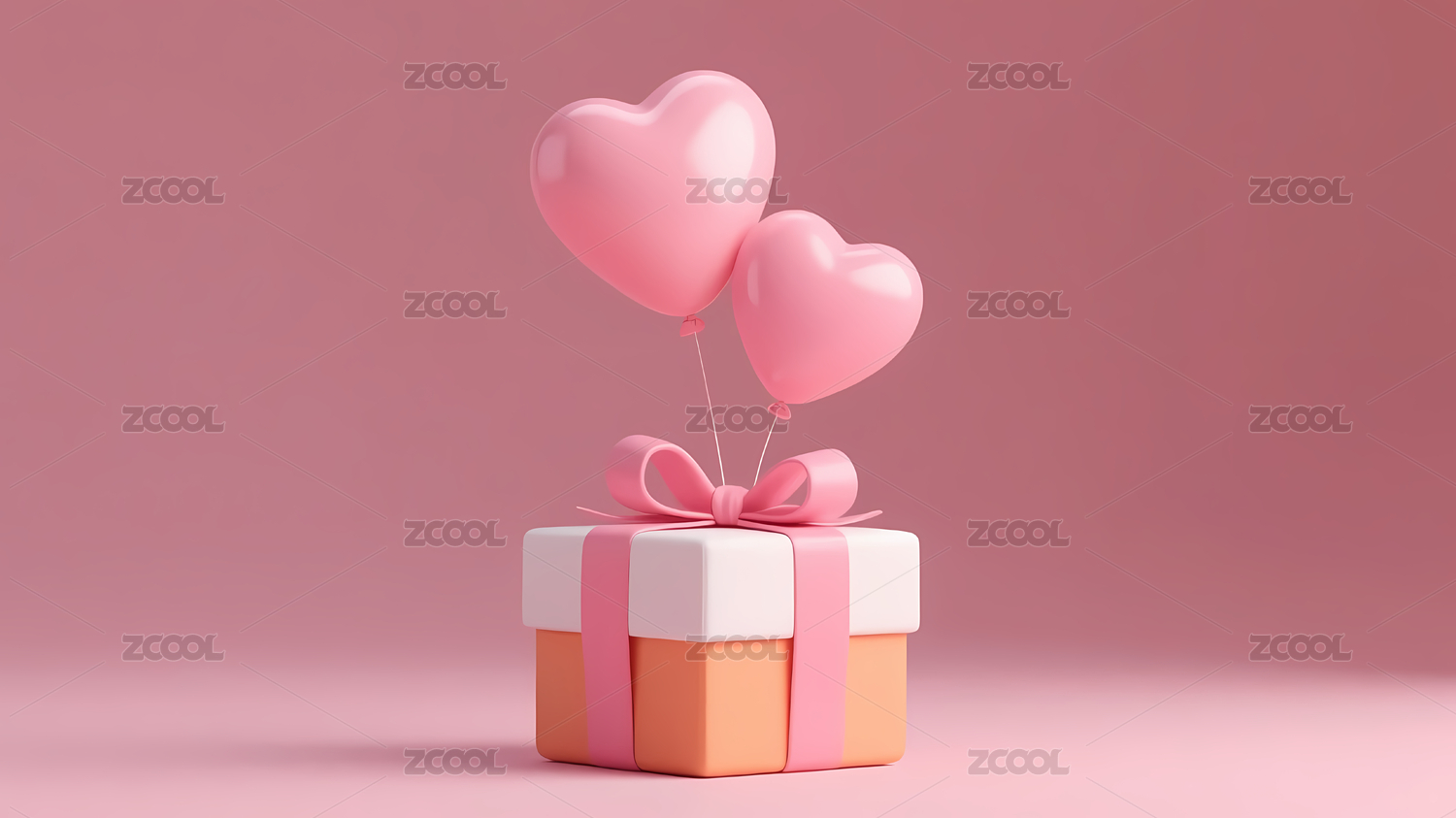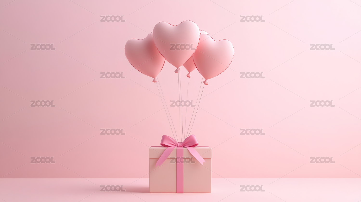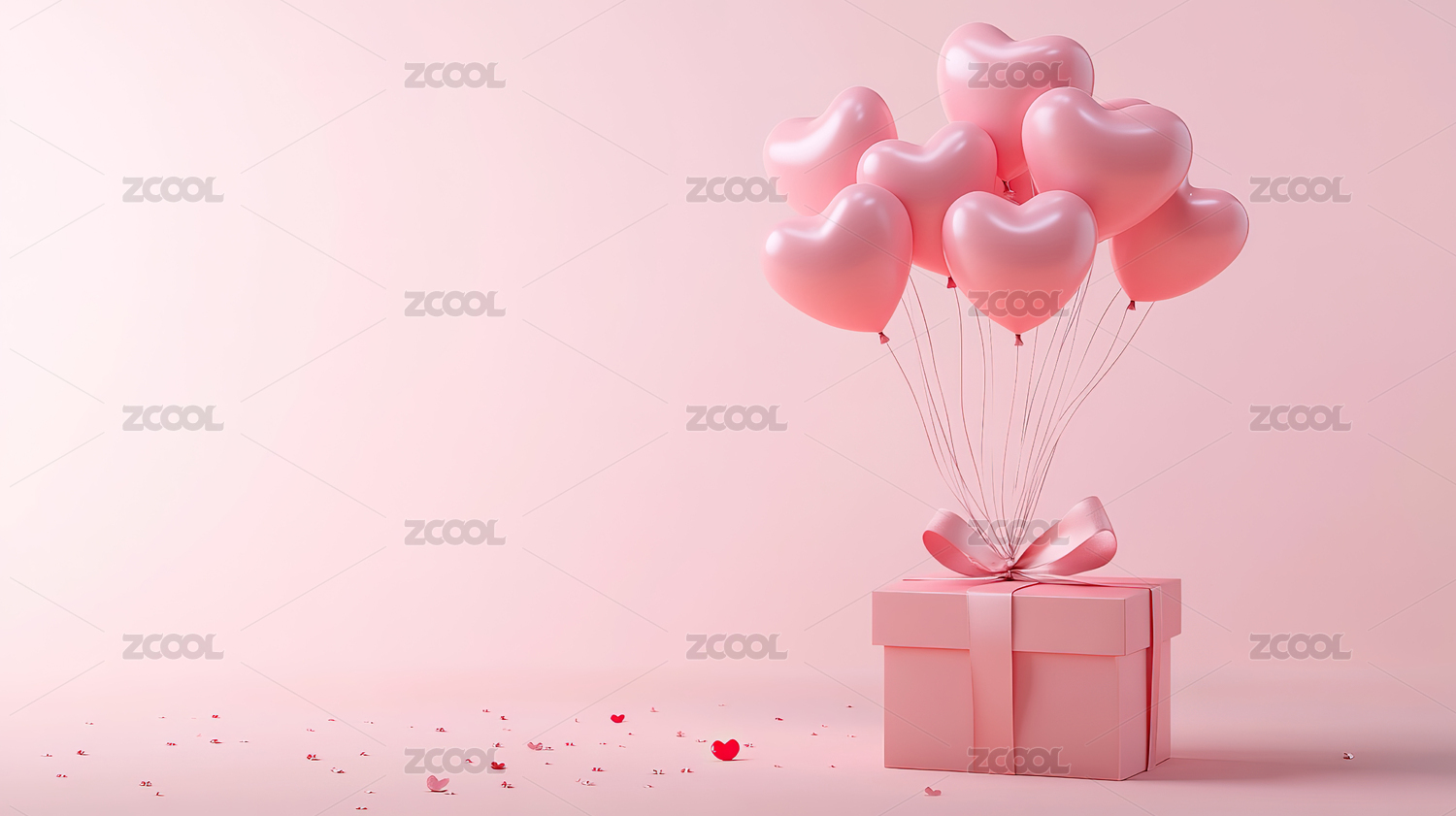 浪漫粉色心形气球礼物盒