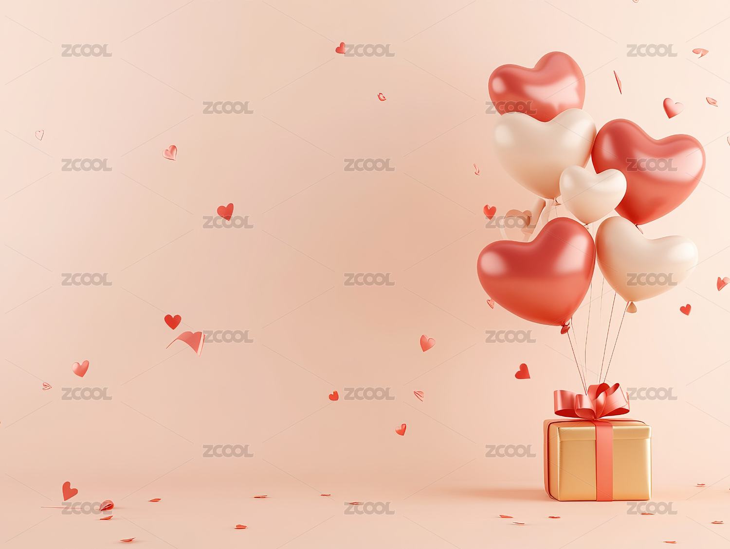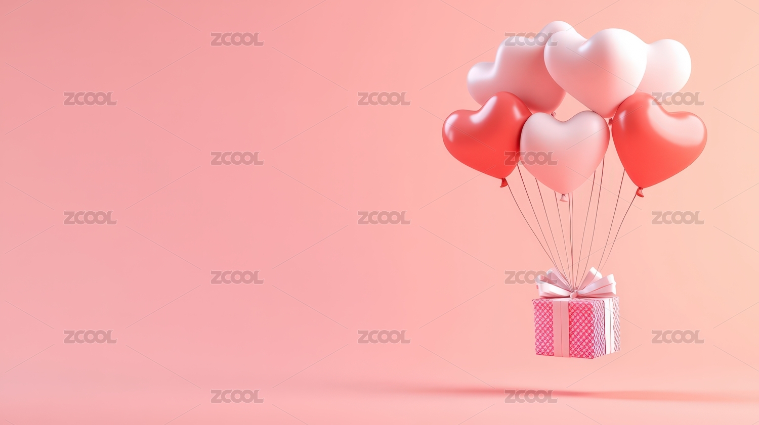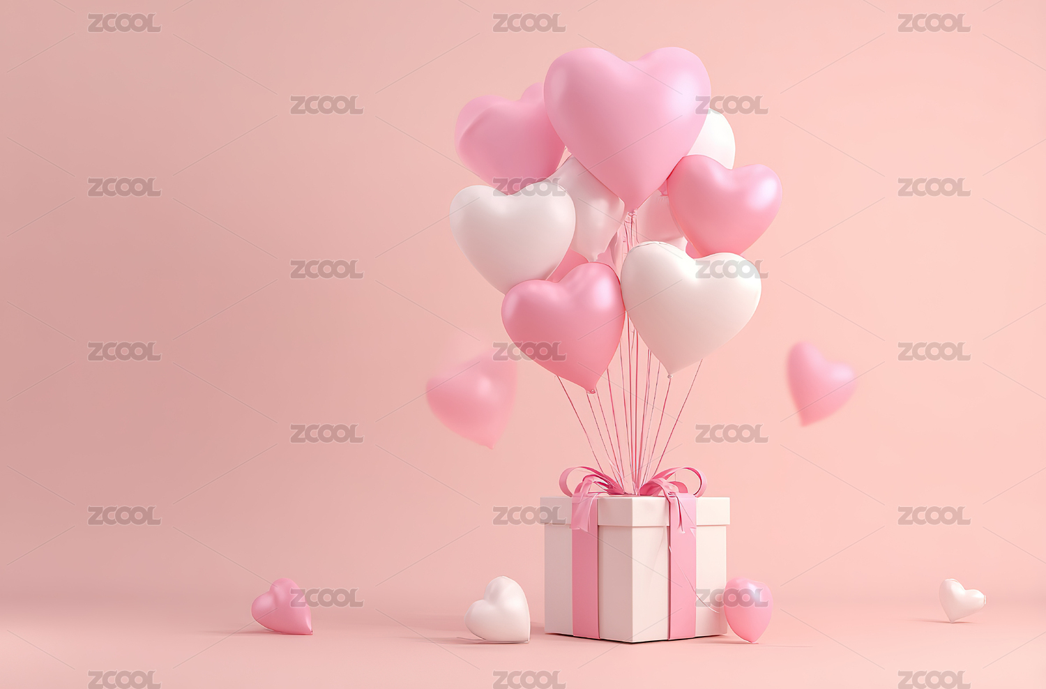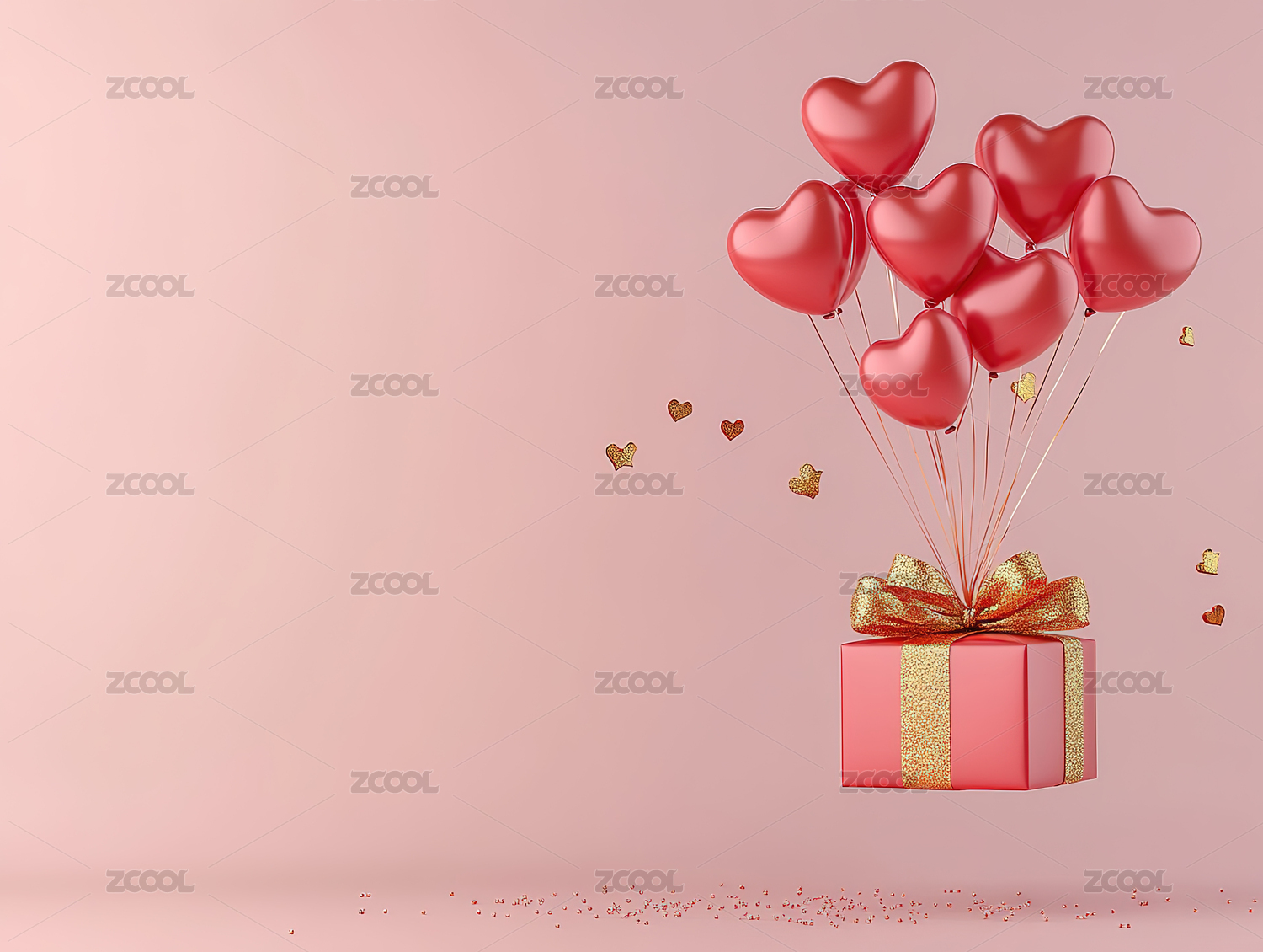 浪漫粉色心形气球礼物盒
