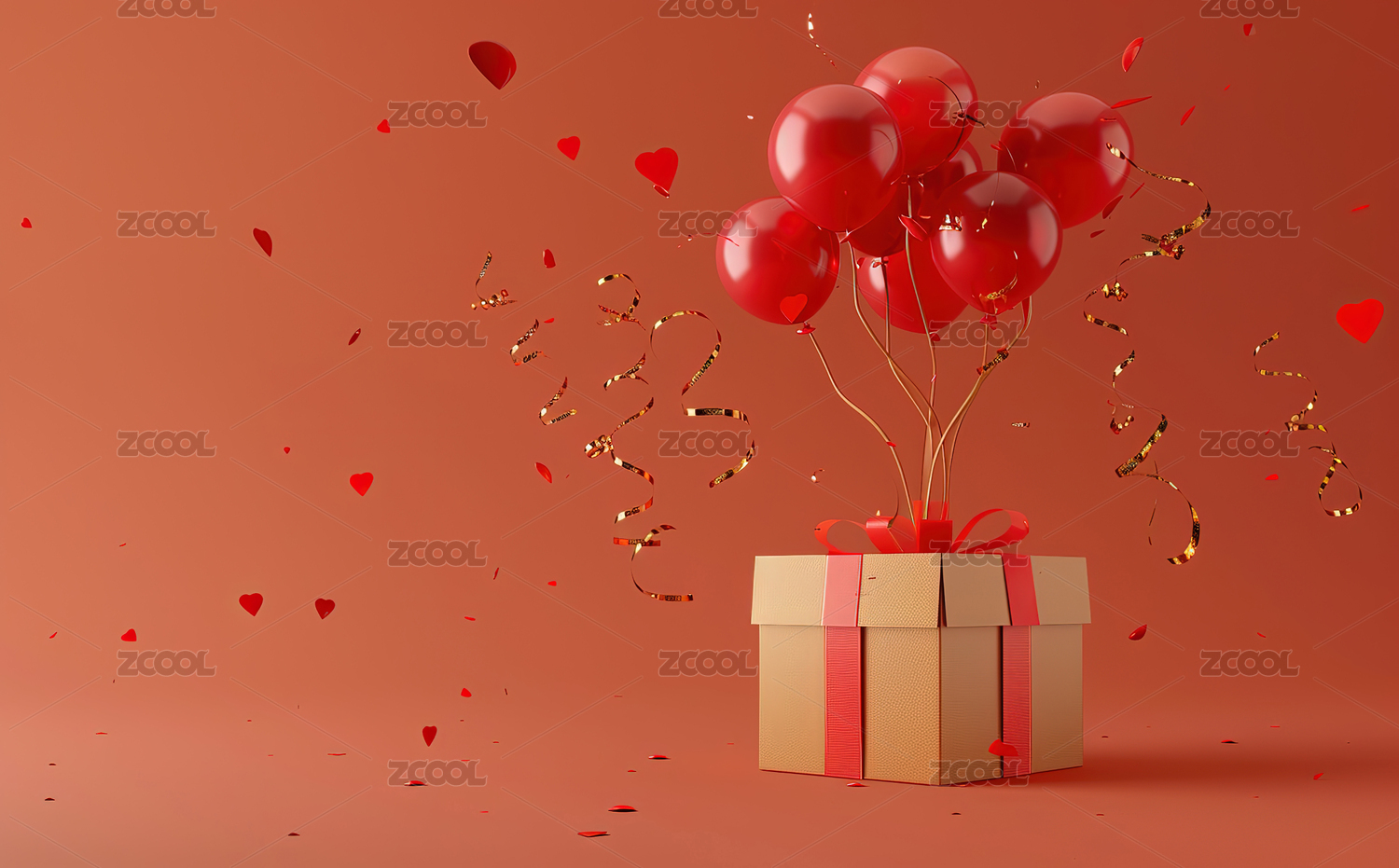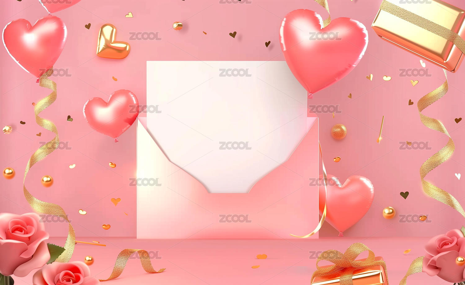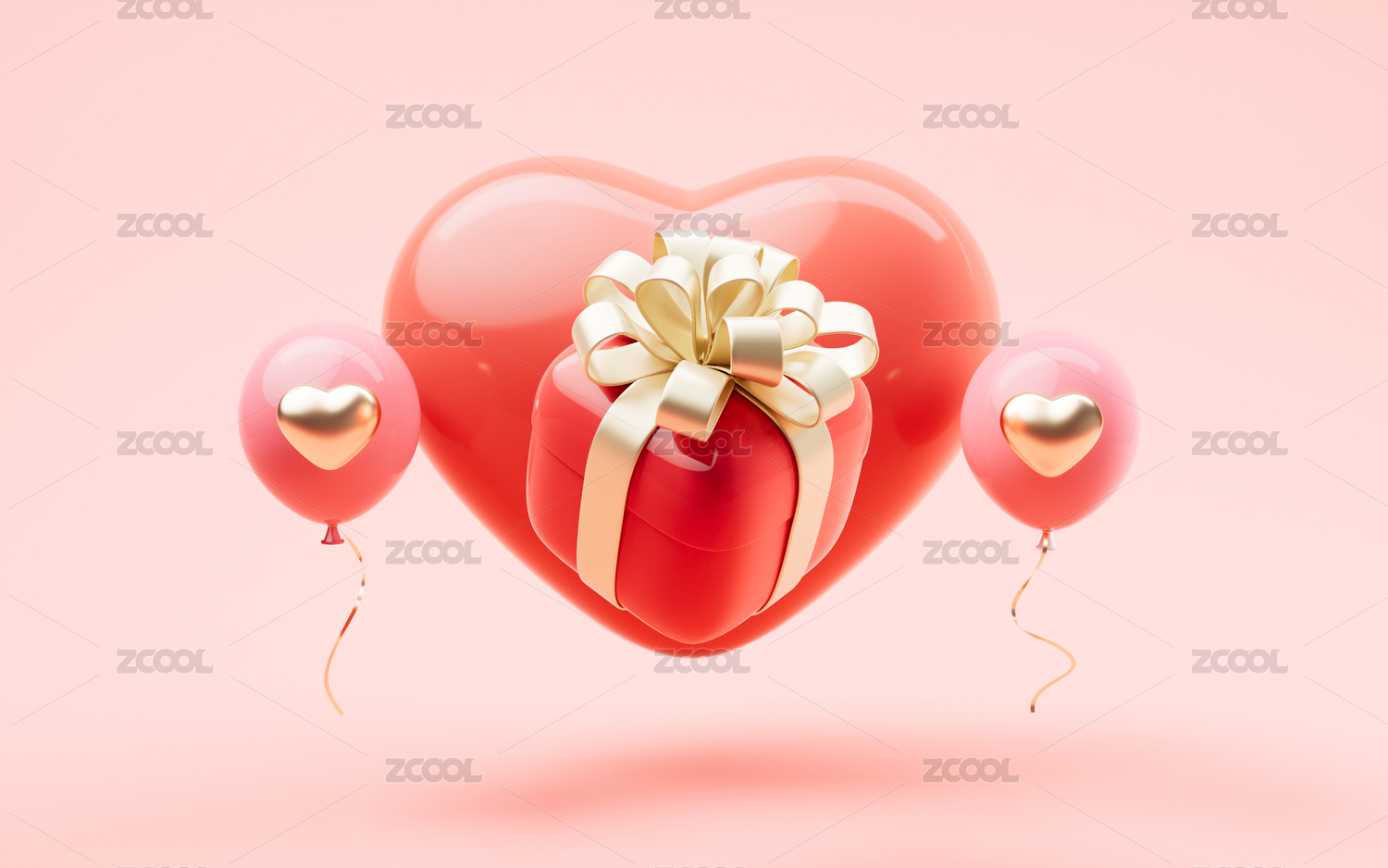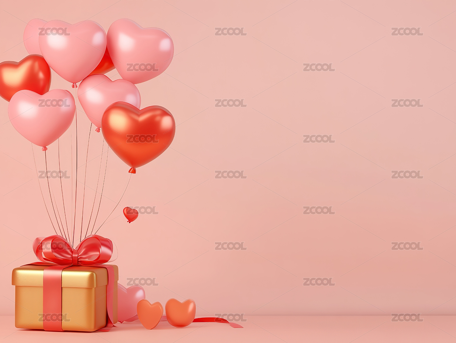 浪漫粉色心形气球礼物盒