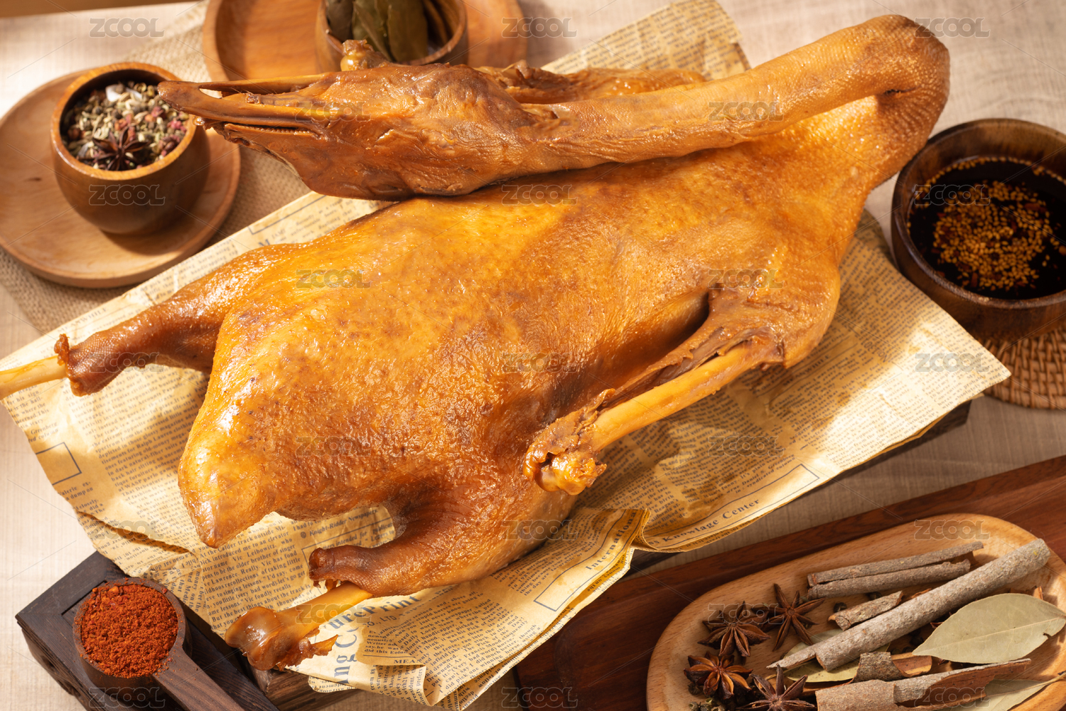 盘子里的凉菜卤菜整只卤鸭整只卤鹅